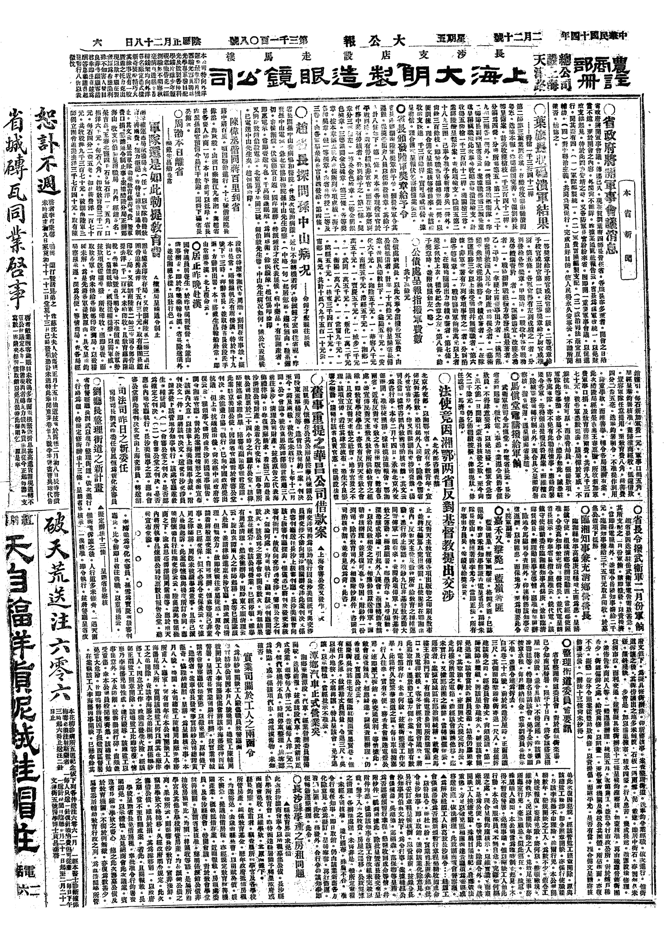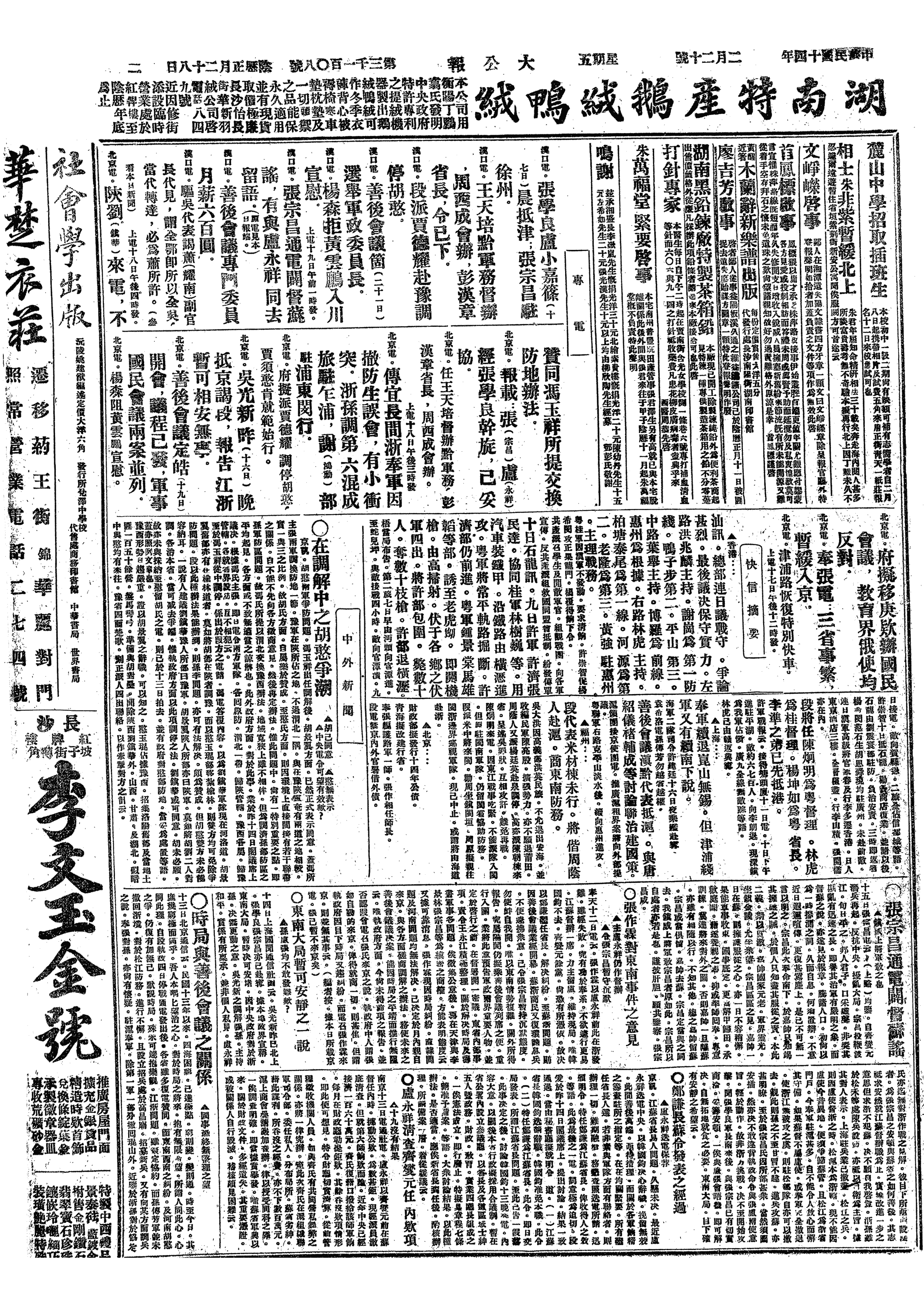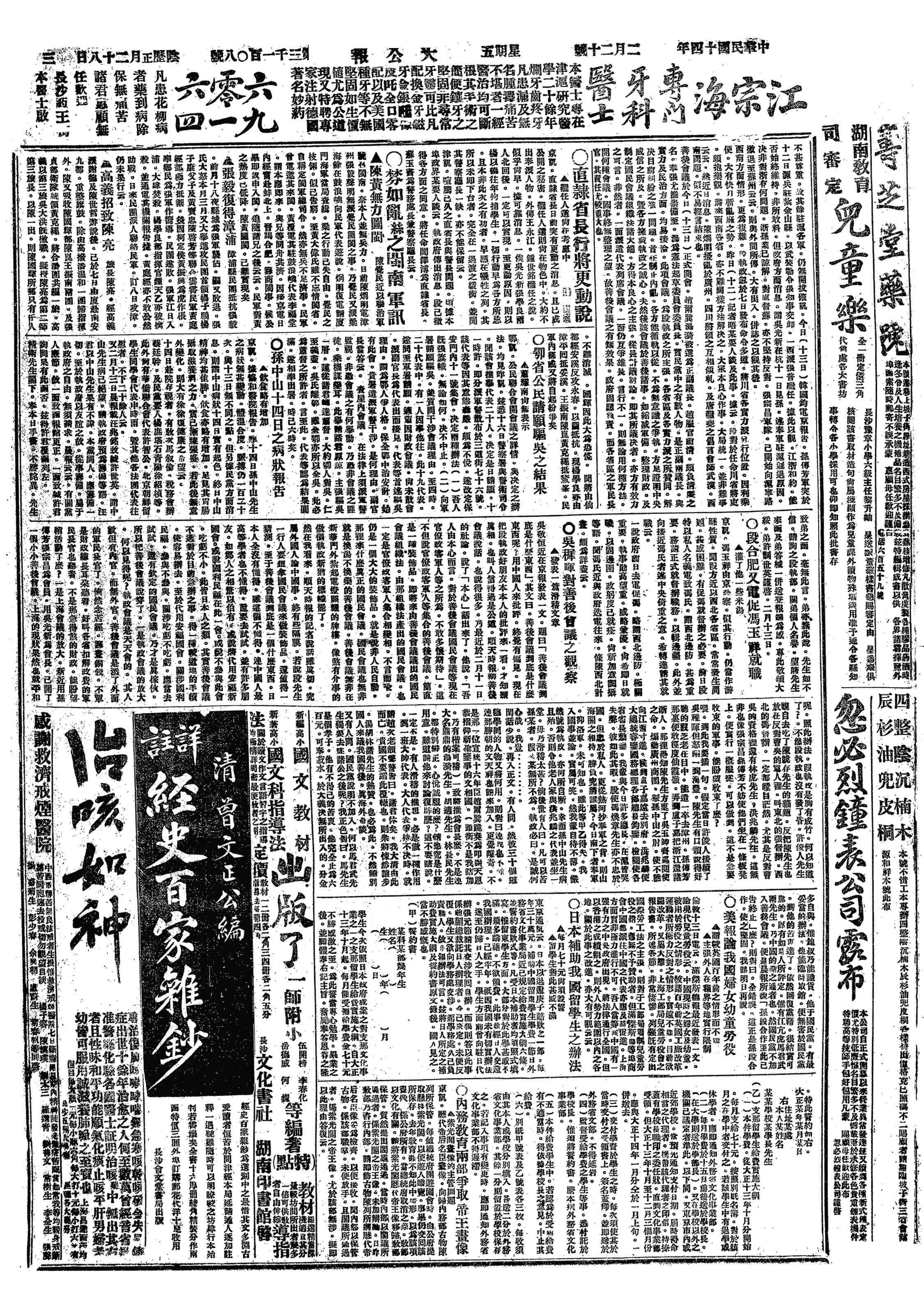 中华民国史大事记>19250220