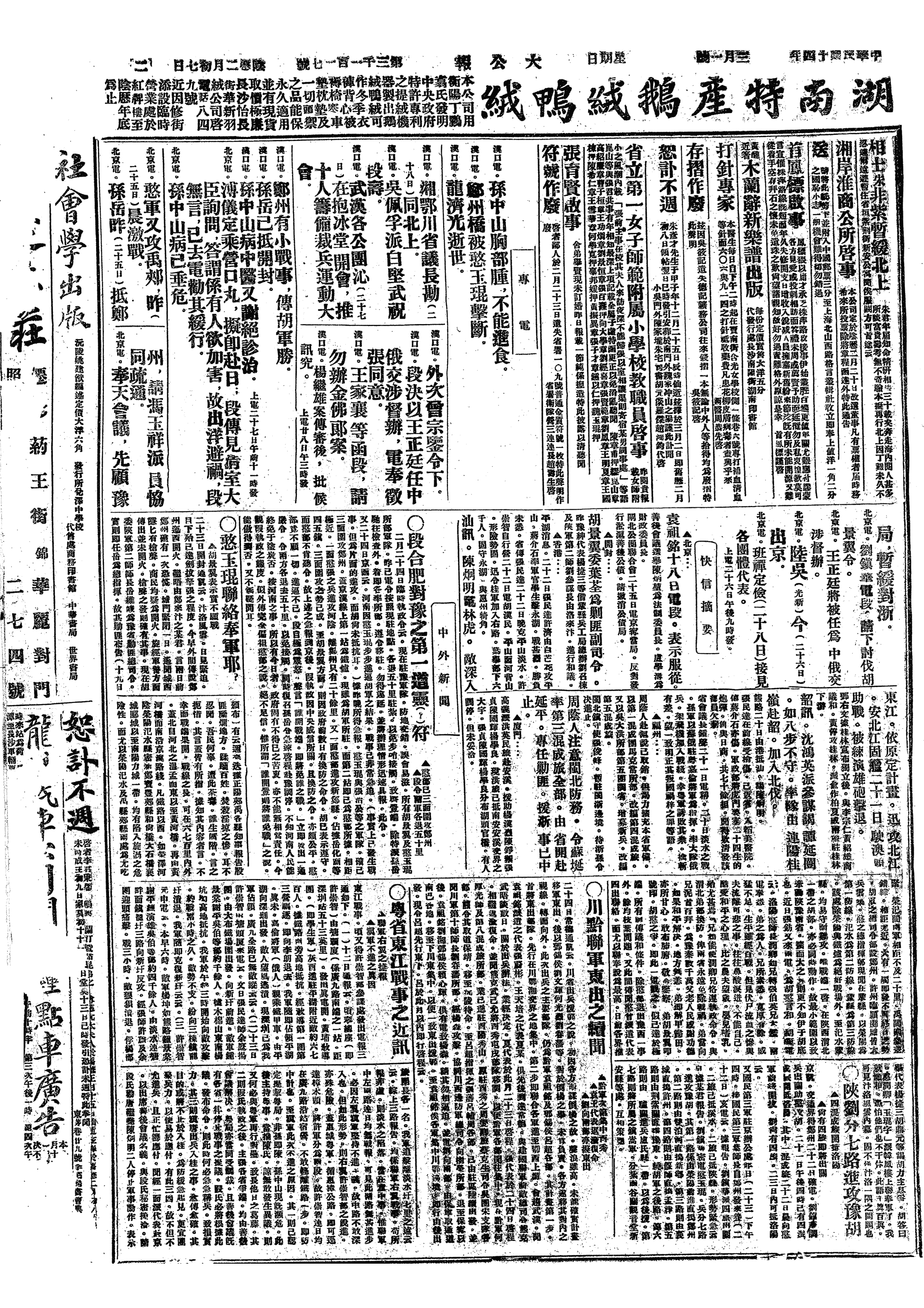 中华民国史大事记>19250301