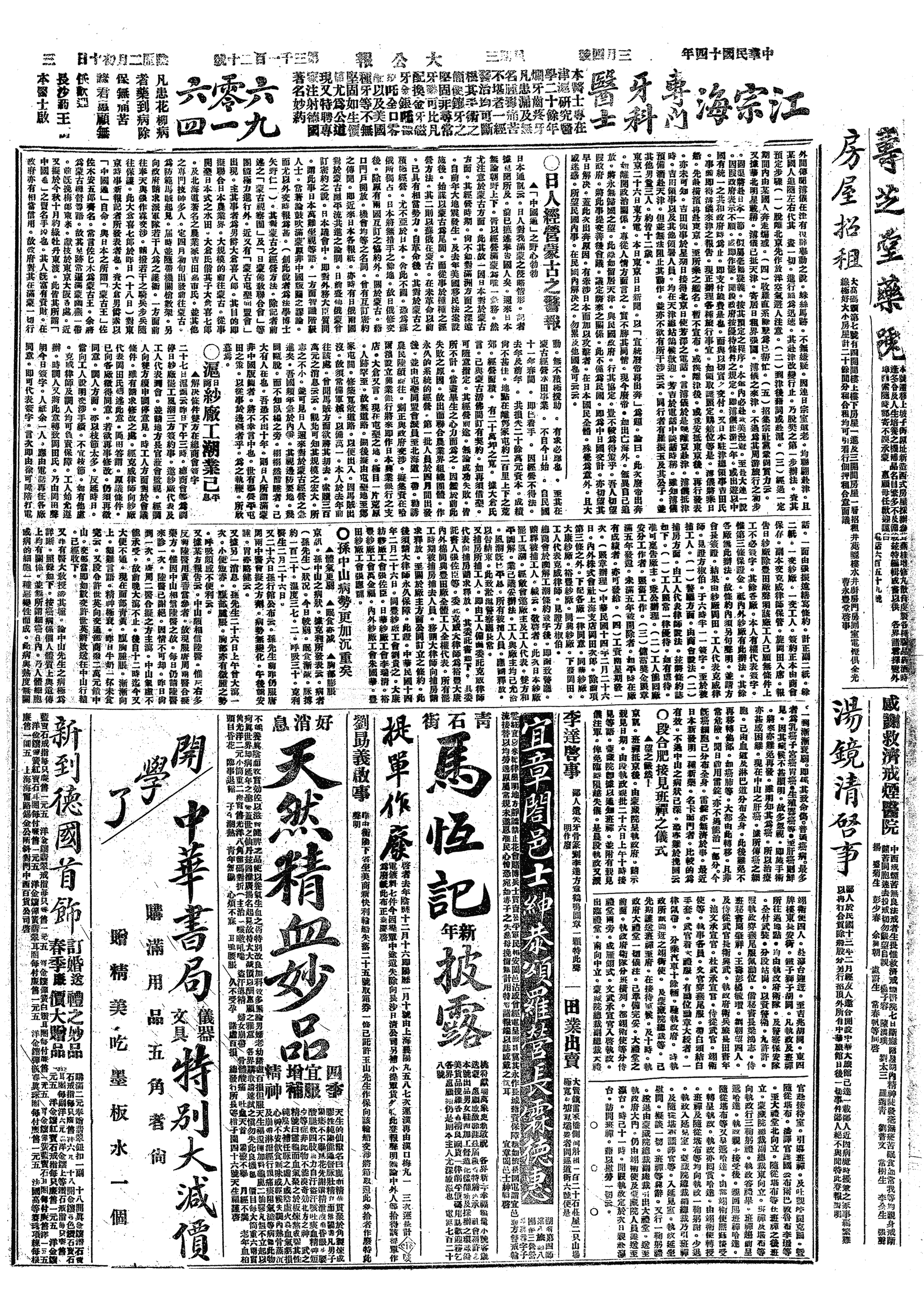 中华民国史大事记>19250304