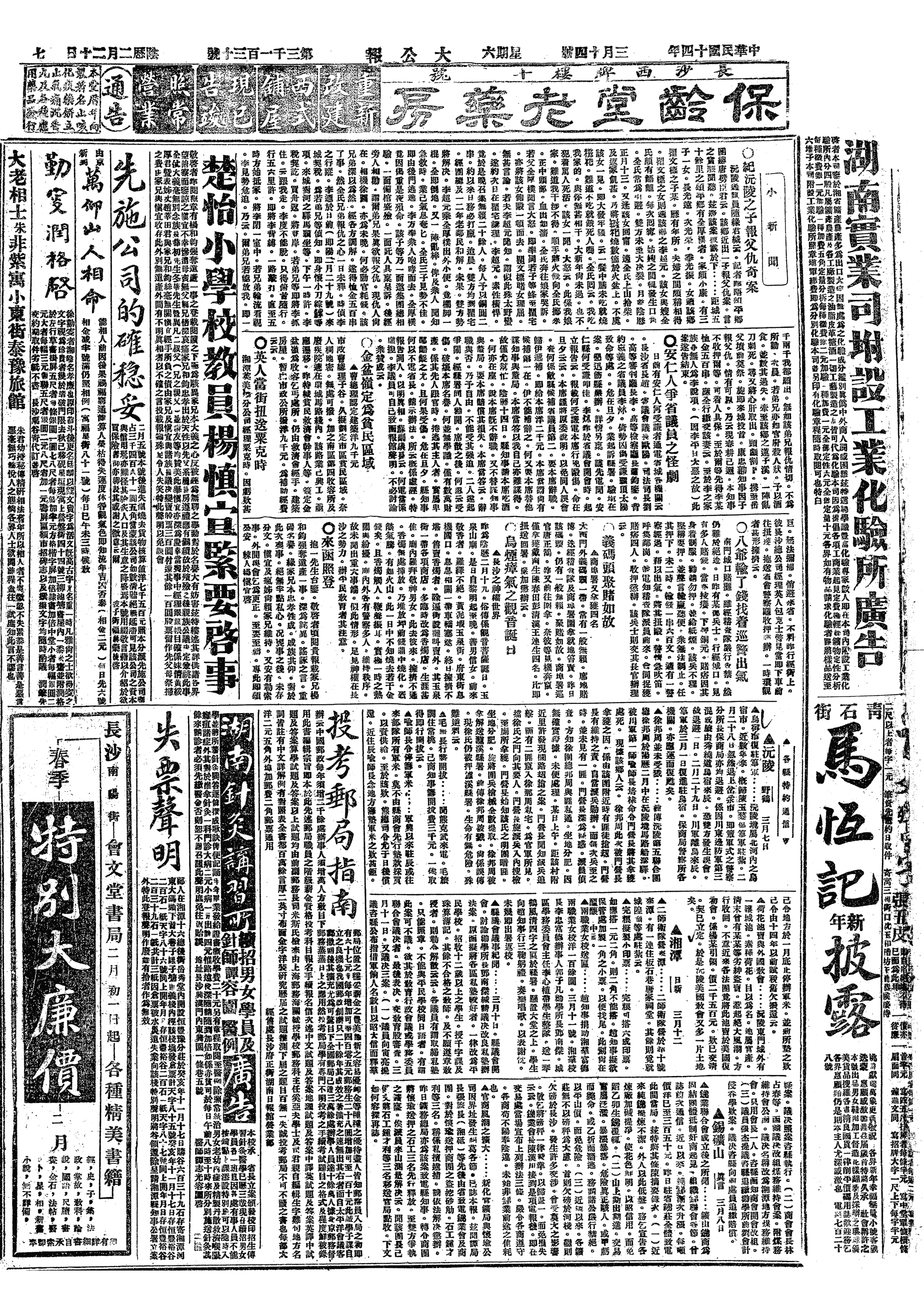 中华民国史大事记>19250314