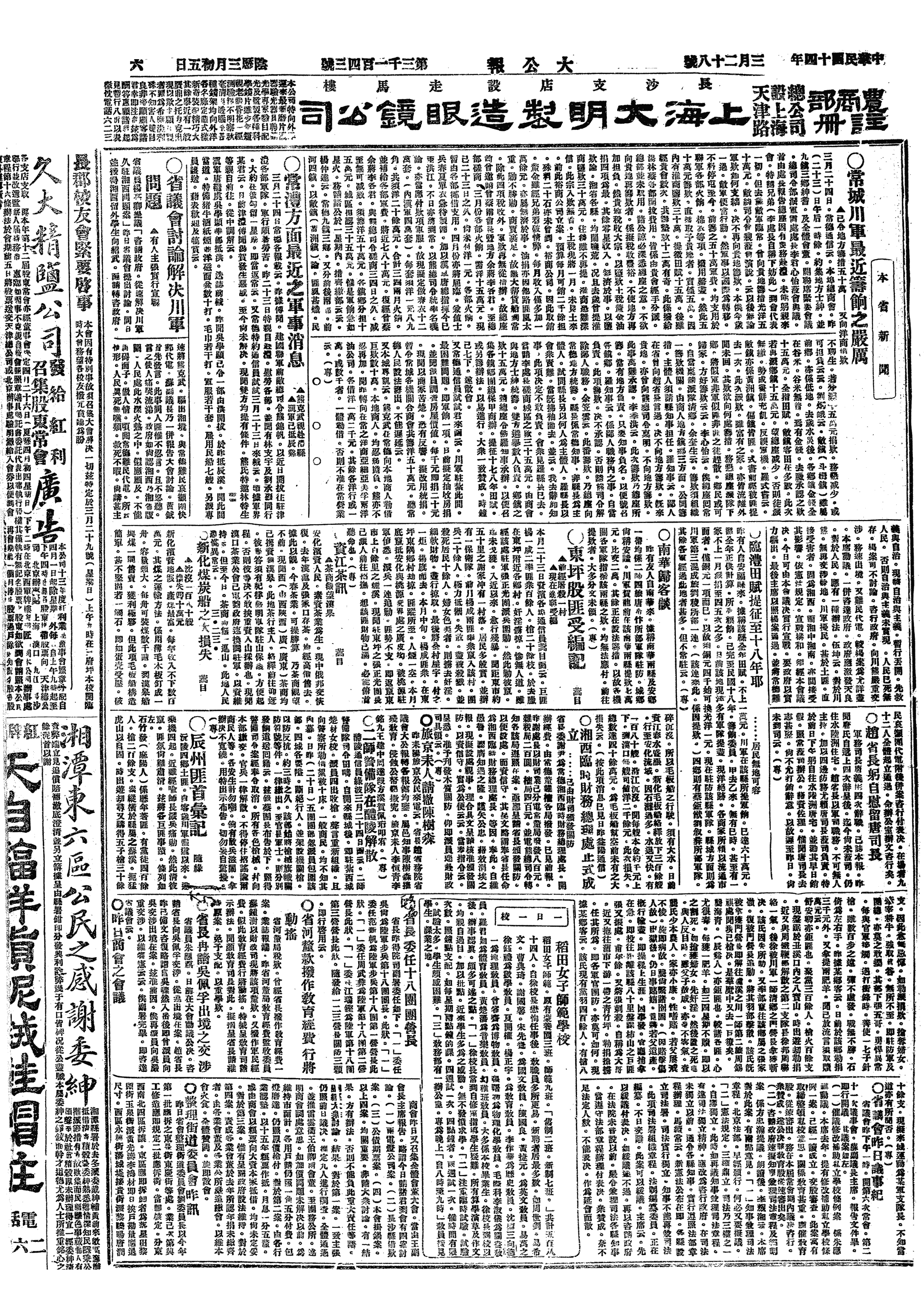 午后召集营长以上官长会议,四时后议毕散会。