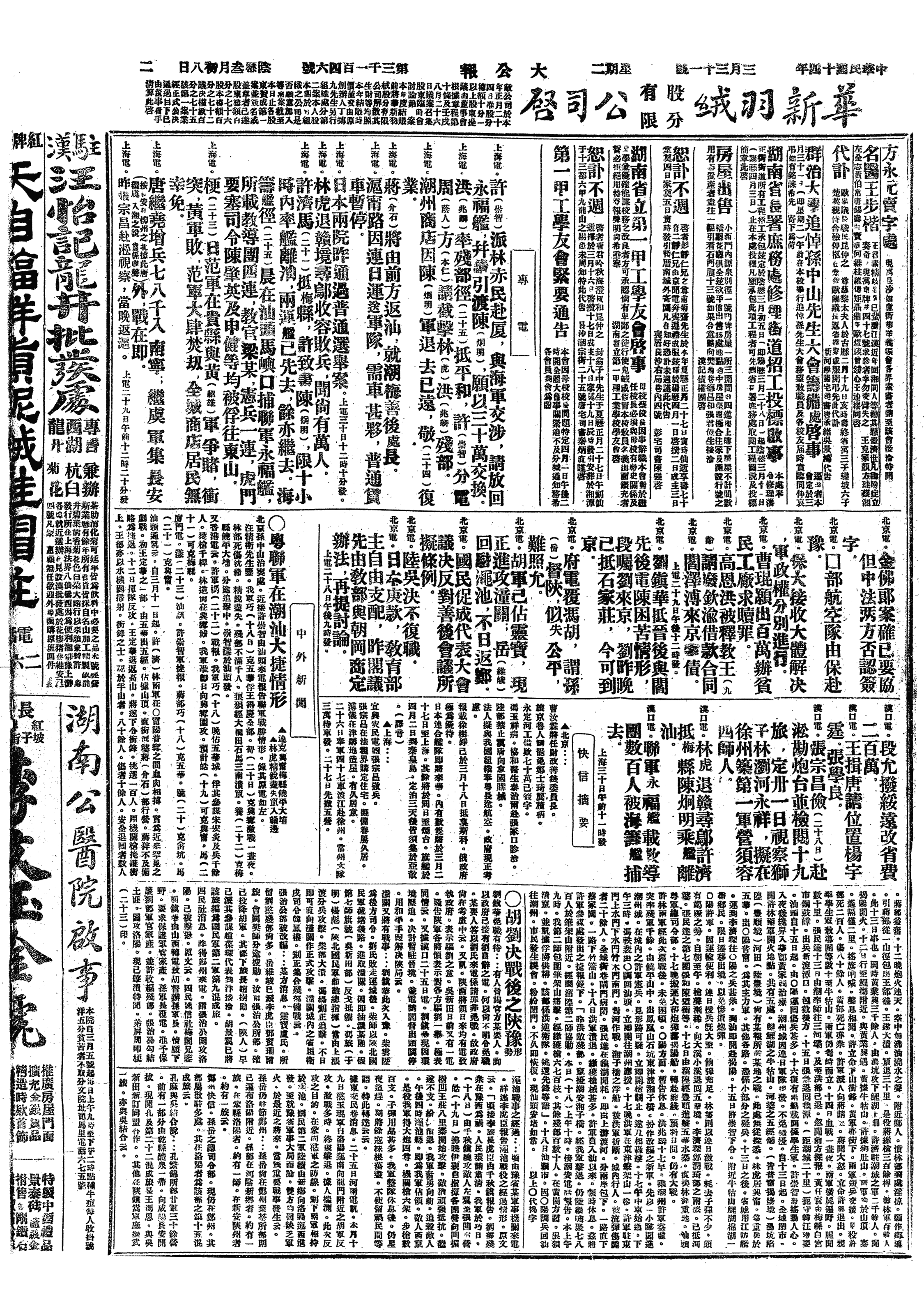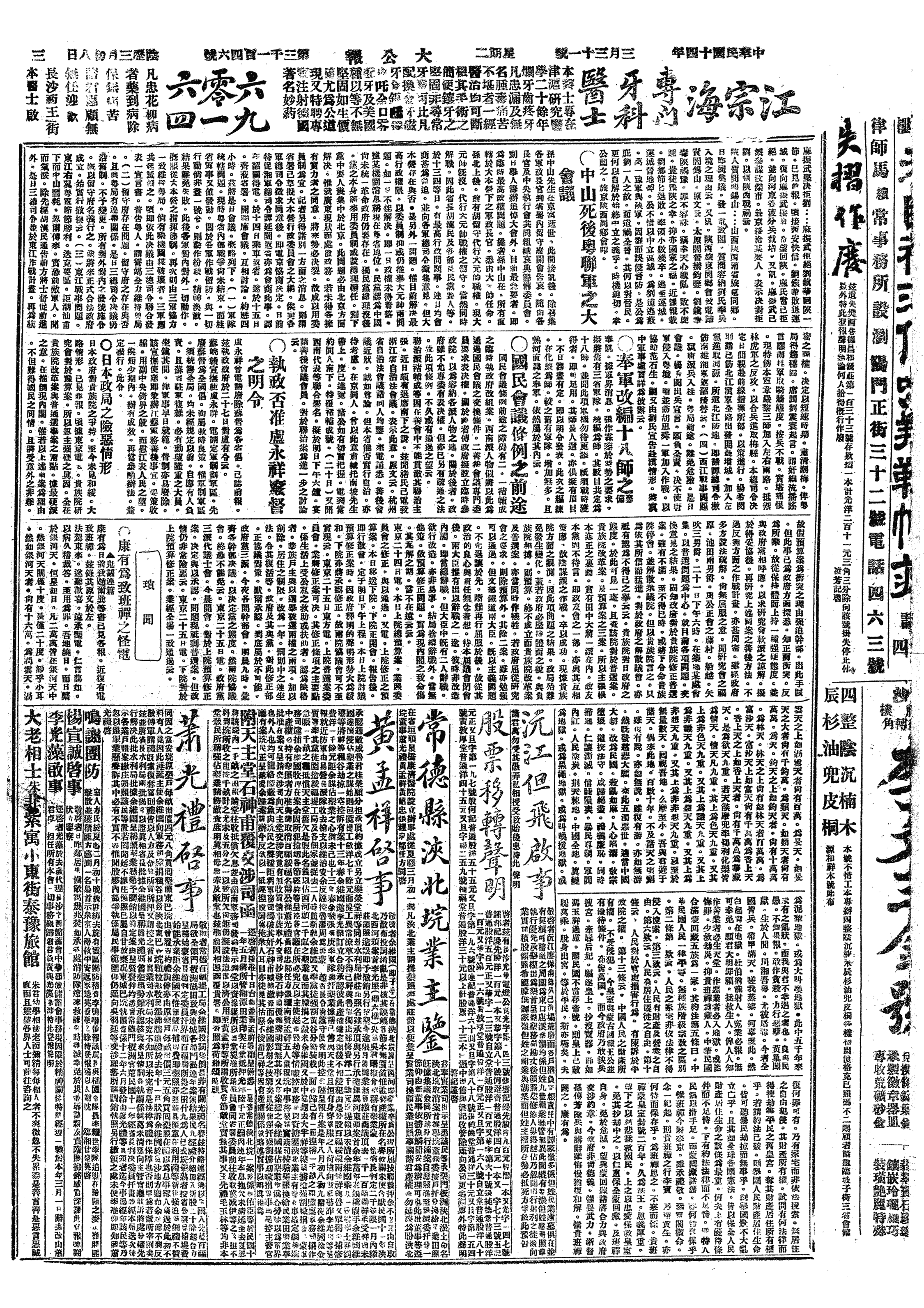 中华民国史大事记>19250331