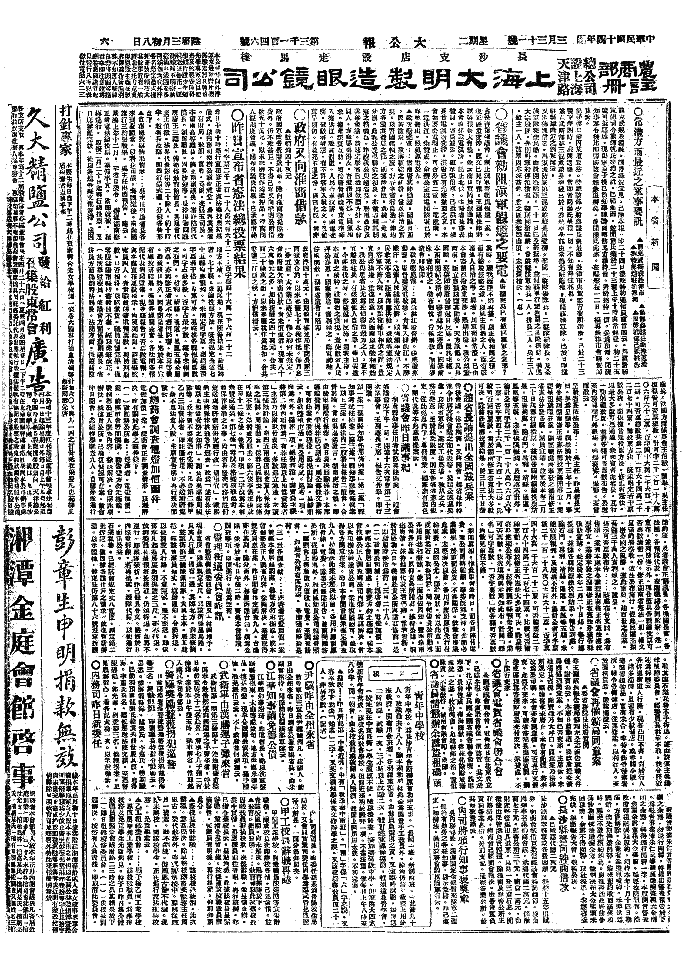 △ 善后会议开第8次会议,讨论军事案。
