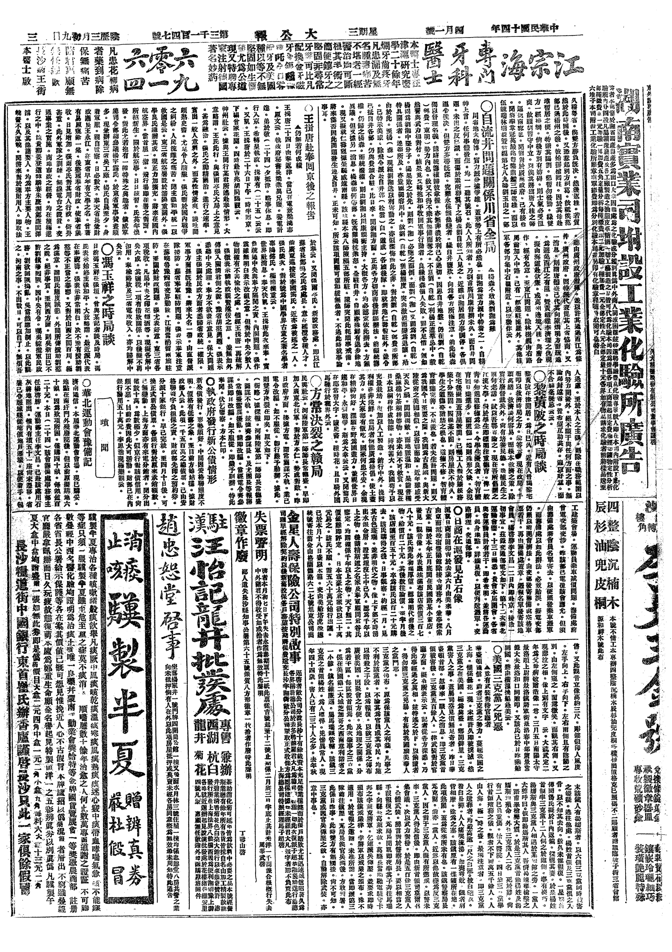 中华民国史大事记>19250401
