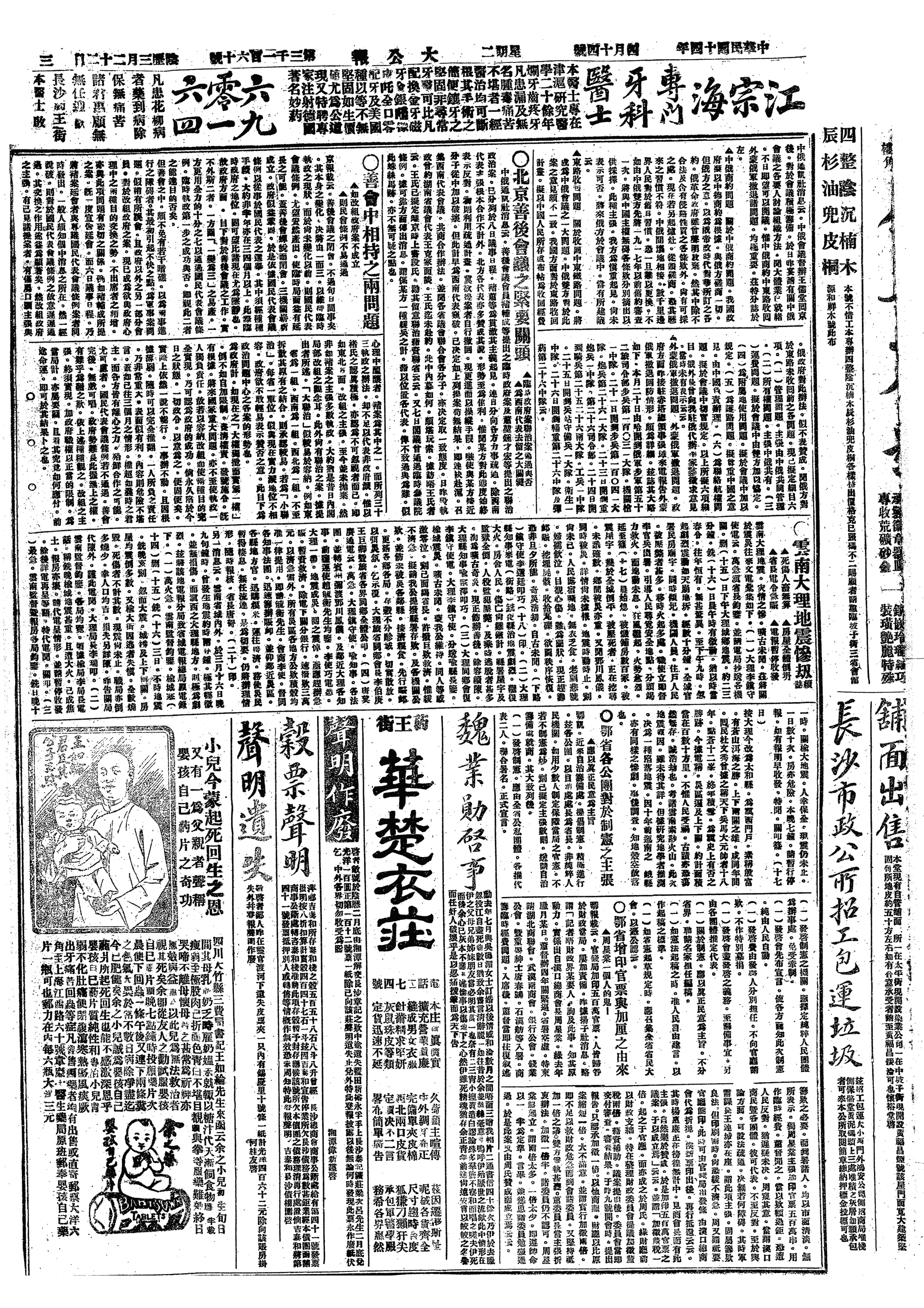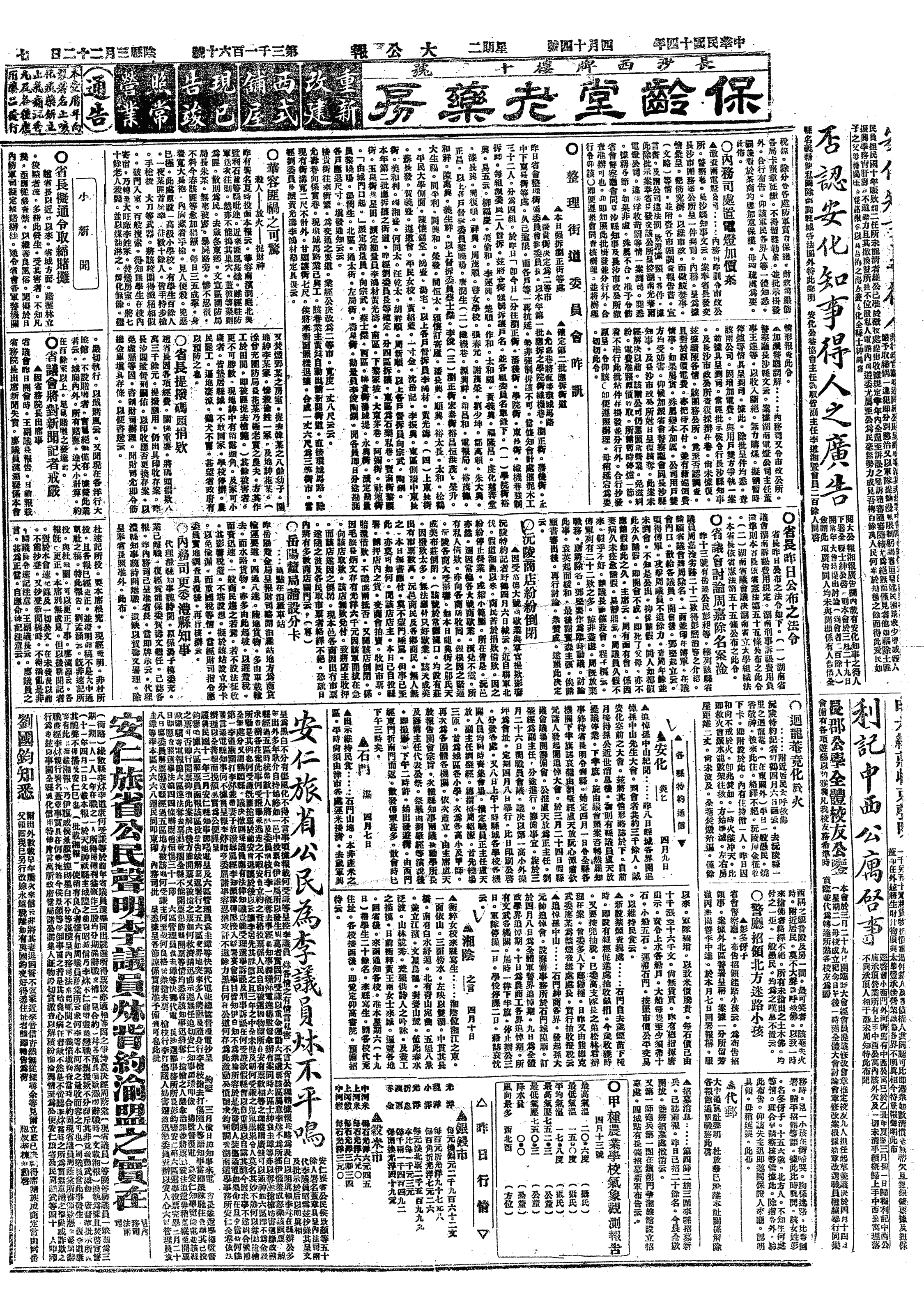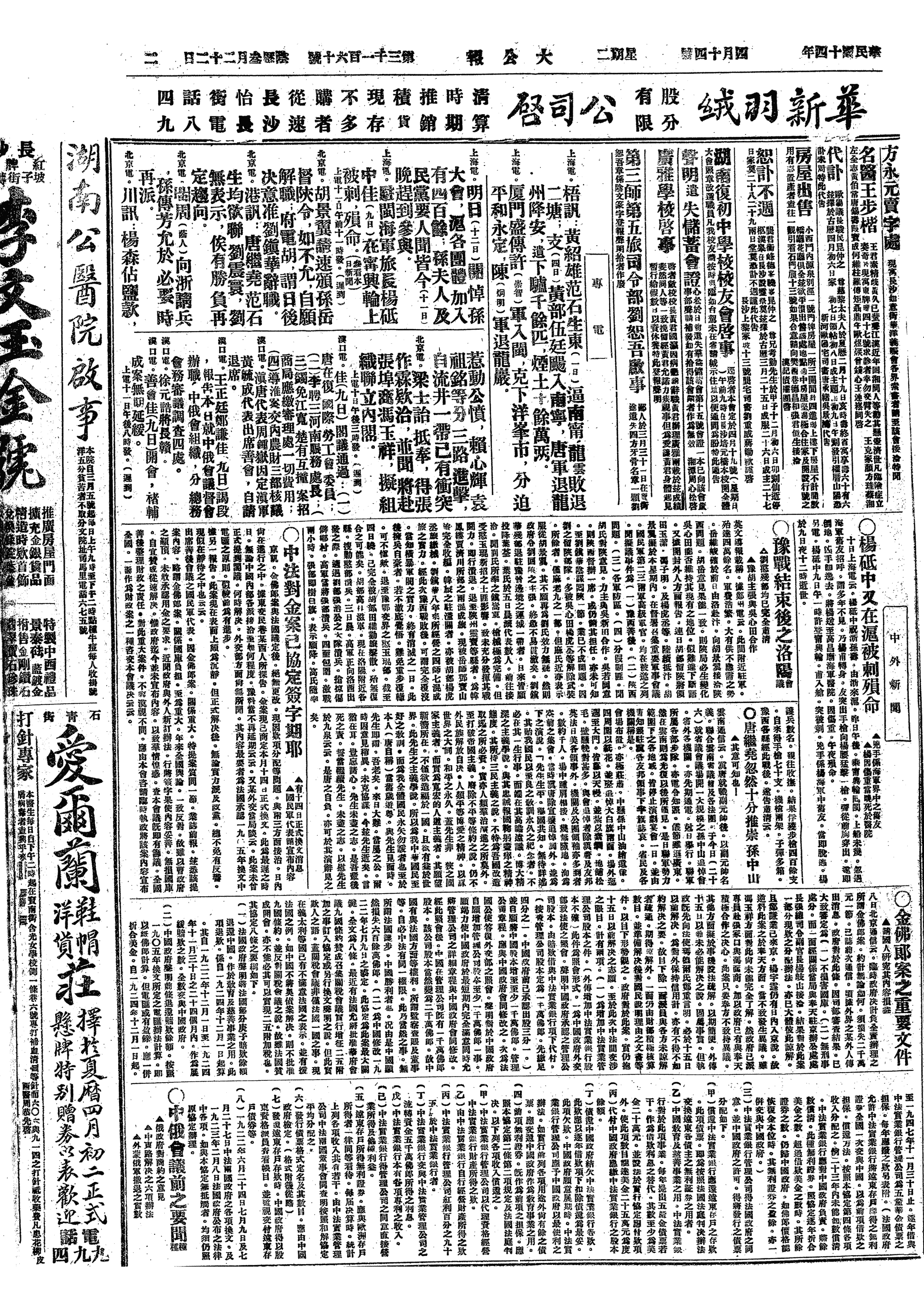 中华民国史大事记>19250414