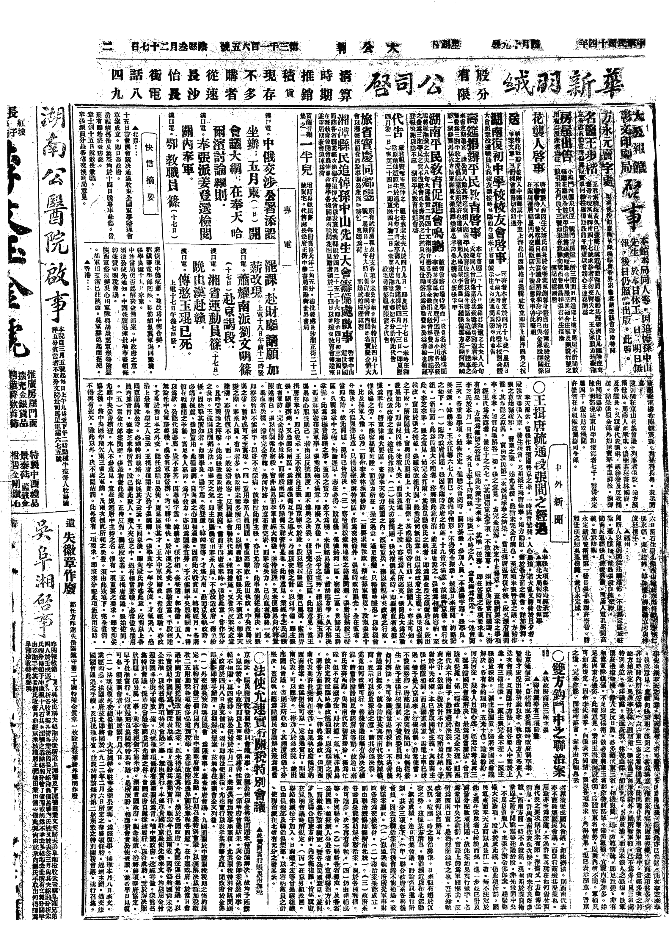 中华民国史大事记>19250419