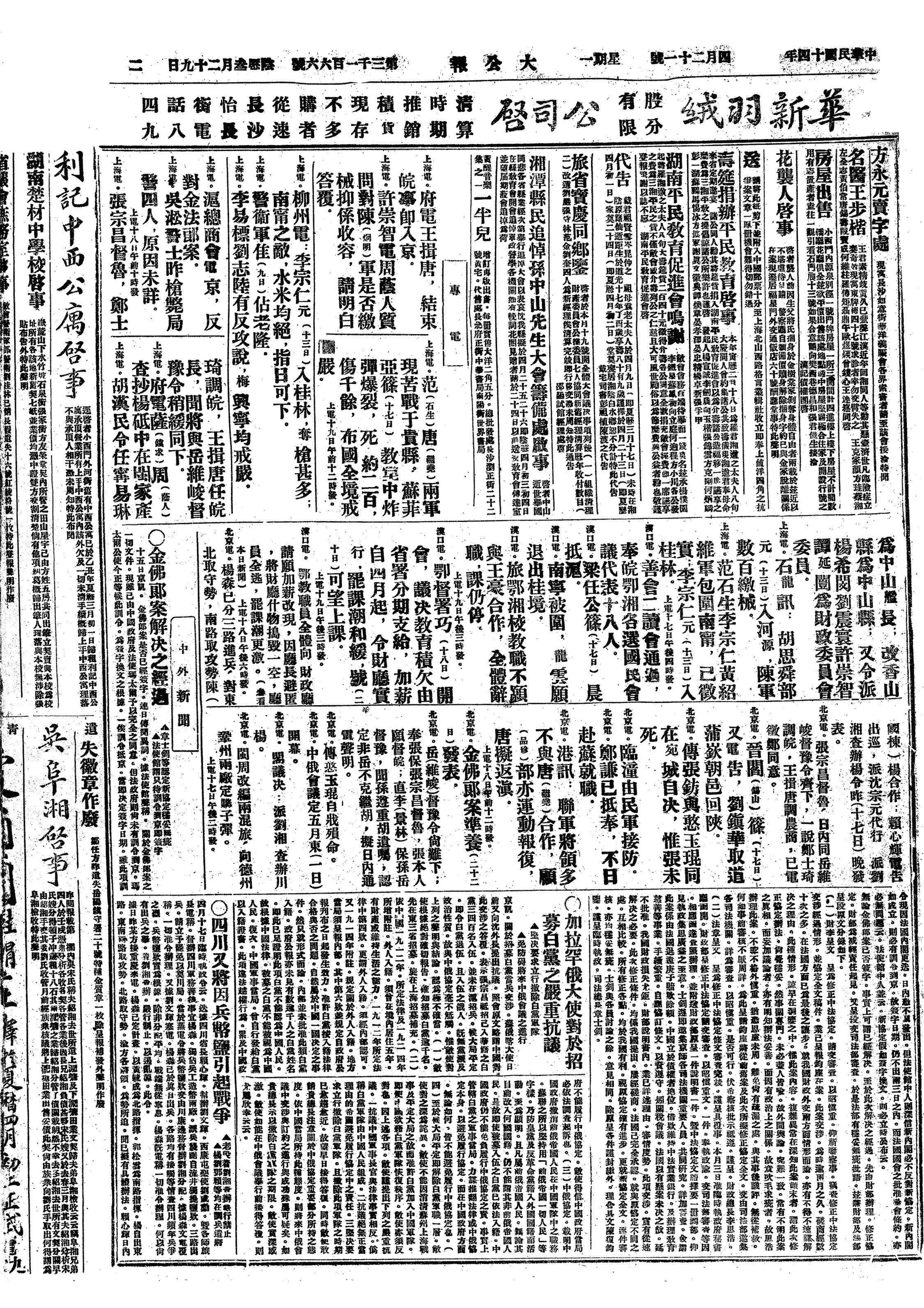 中华民国史大事记>19250421
