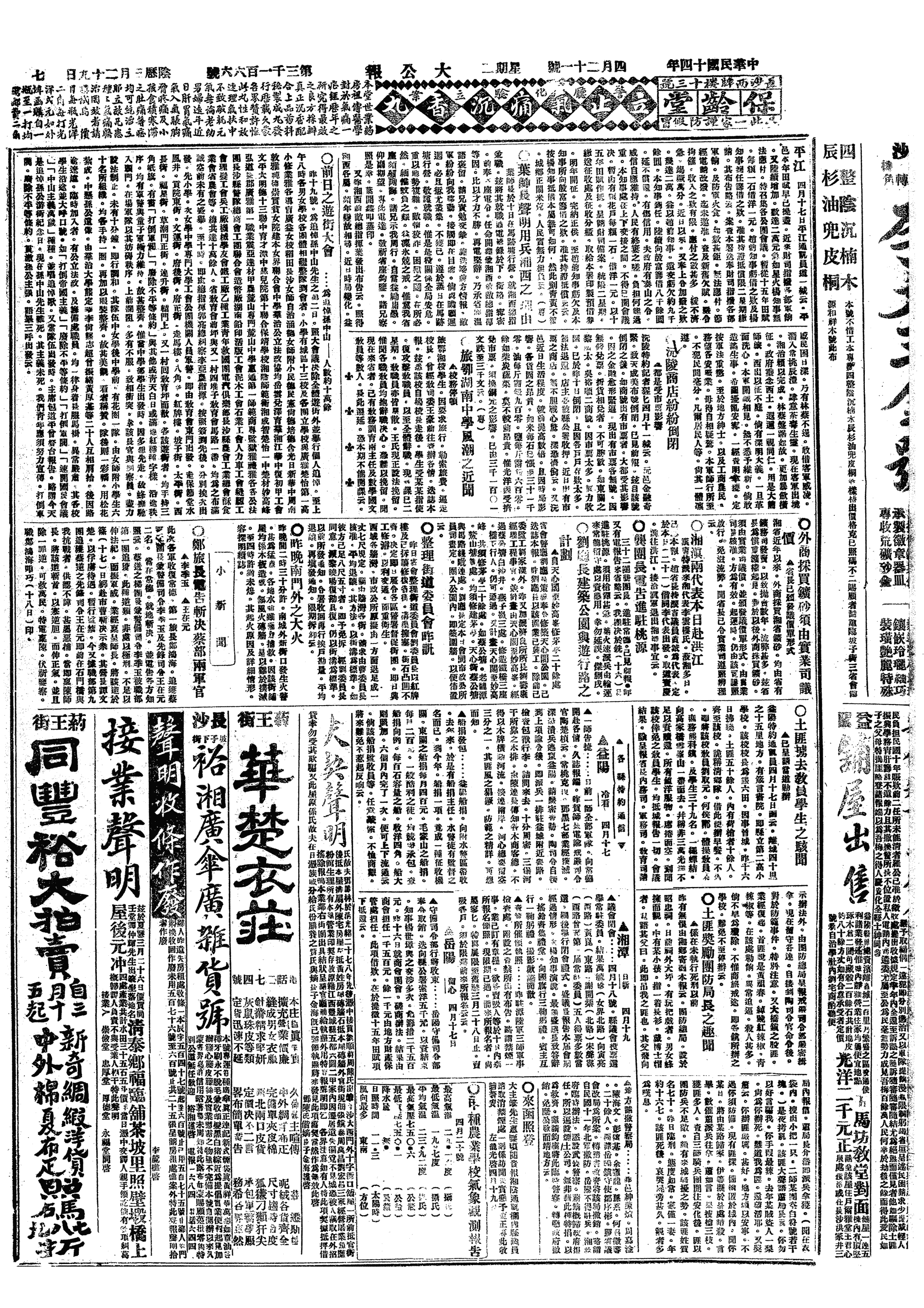 △ 湖南省长沙市各界军民举行追悼孙中山大会。