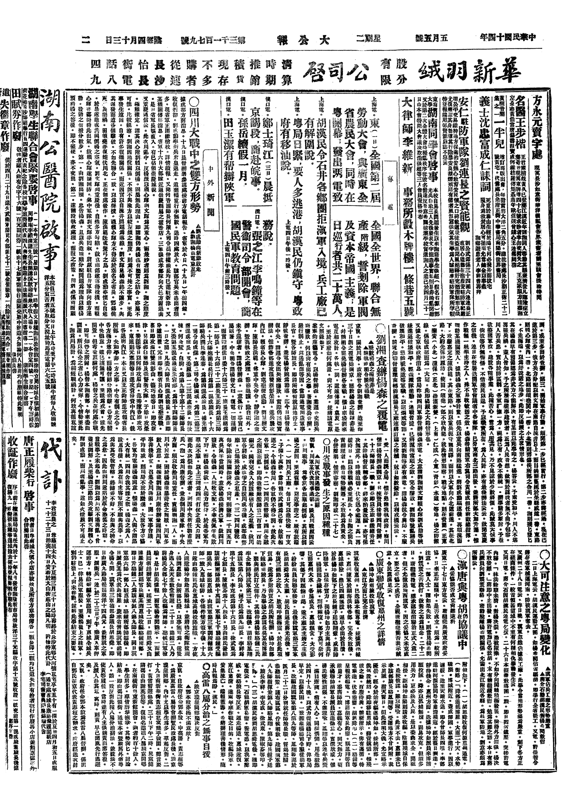 中华民国史大事记>19250505