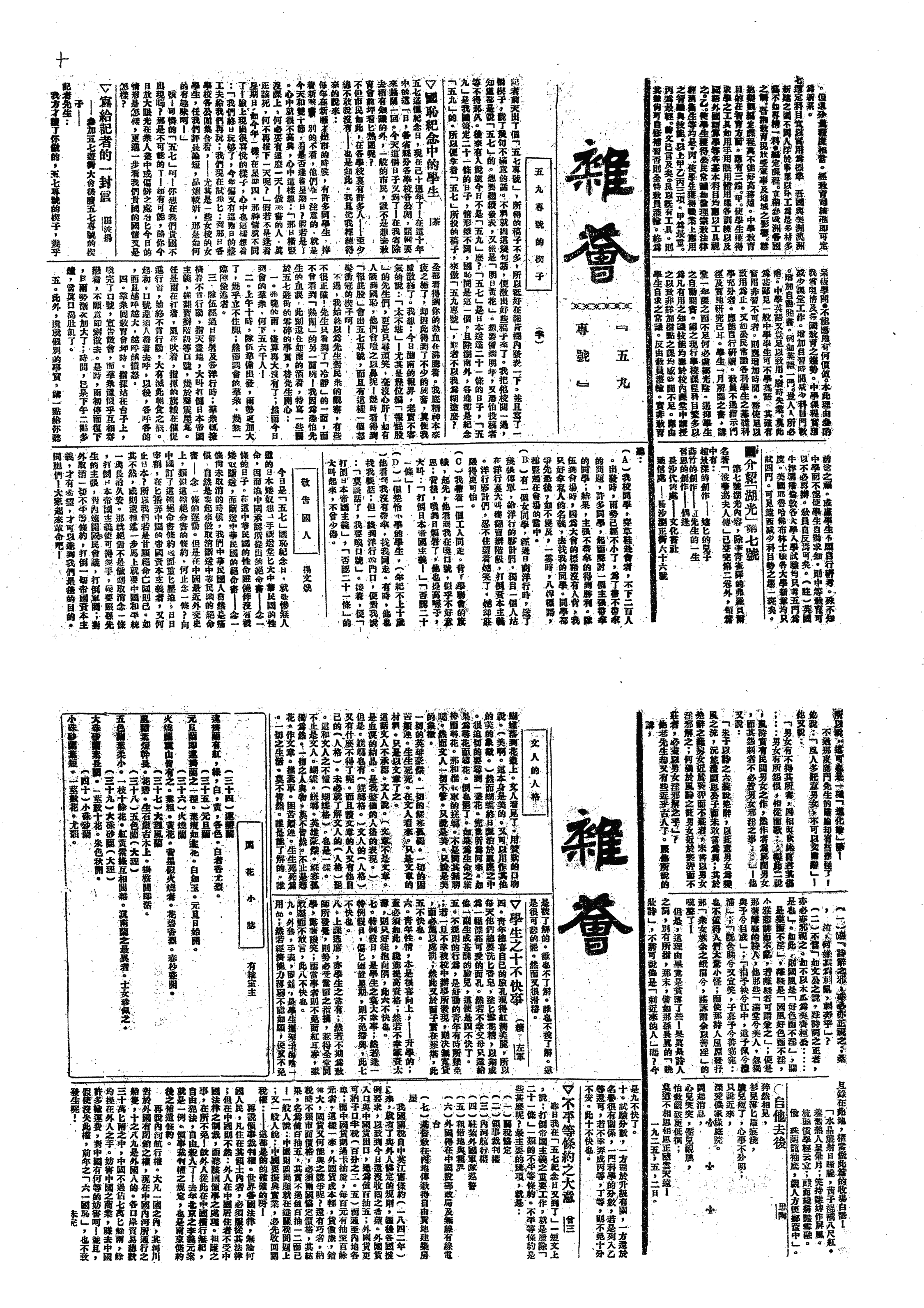 △ 福州学生集队游行,并沿途演说,纪念“五九”。