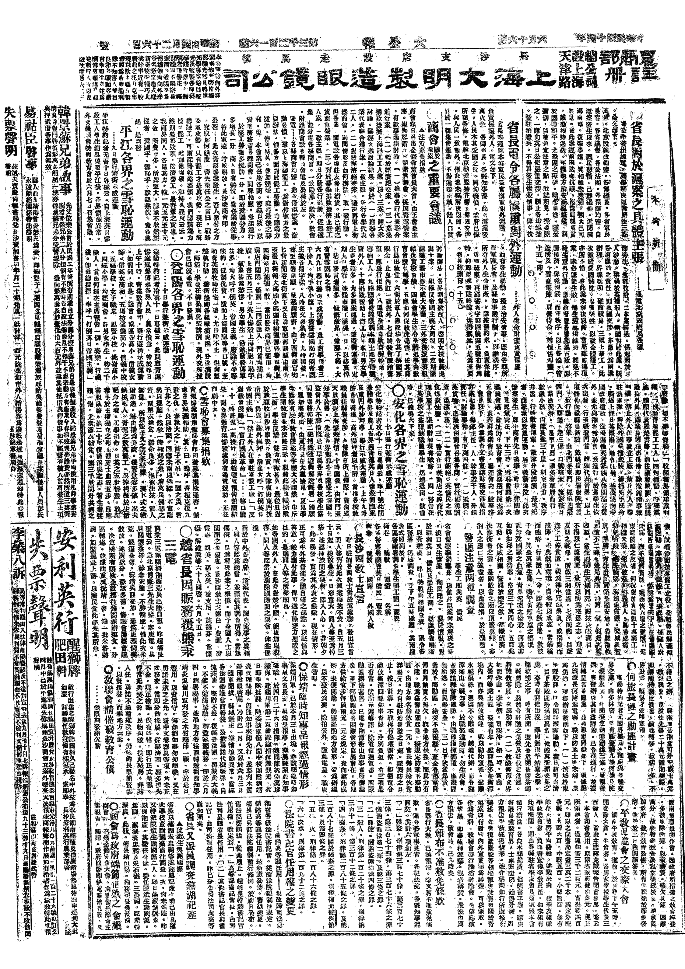 △ 萧耀南逮捕汉口人道医院院长肖英,并加以鼓动工潮罪名,是日枪杀。汉口民众运动亦遭压制。