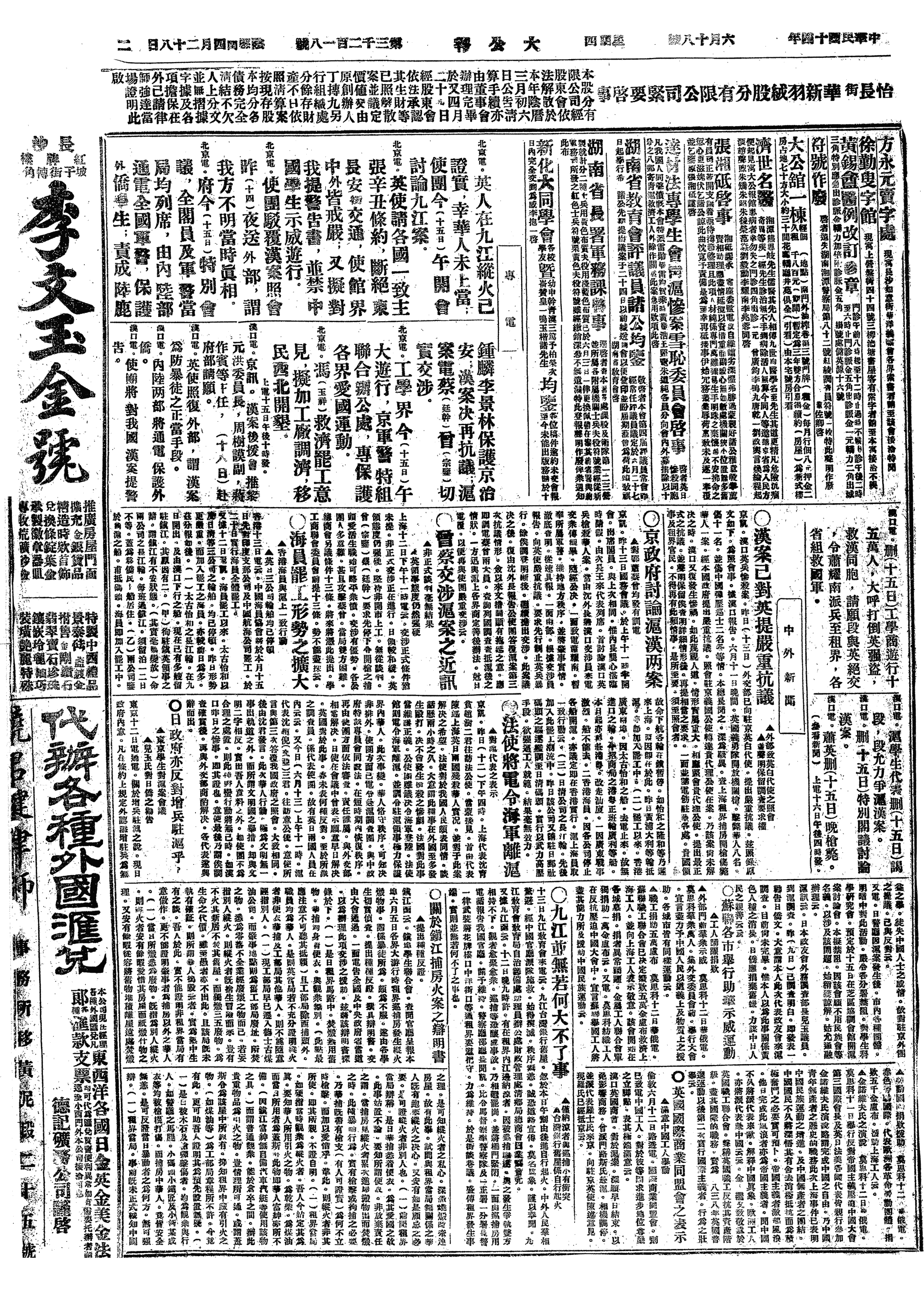 △ 湖北交涉公署照会驻汉英领署,提出第2次抗议,谓: