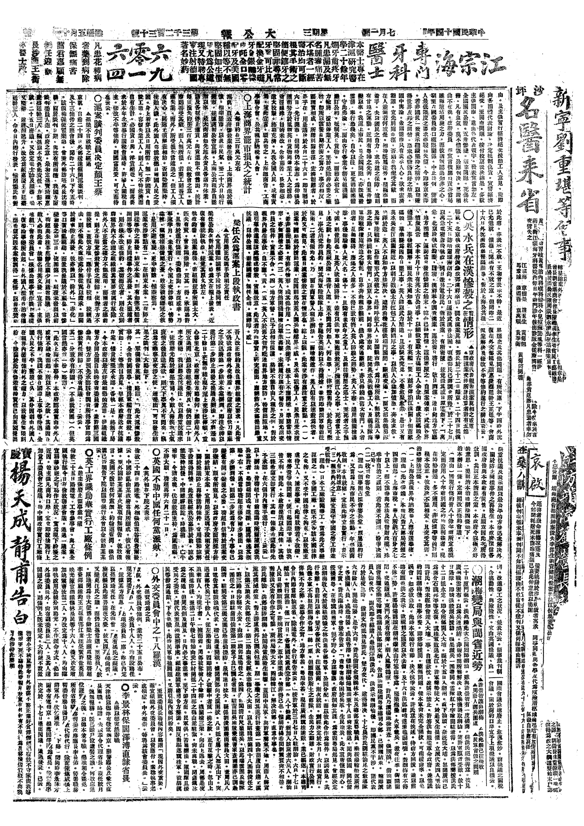 中华民国史大事记>19250701