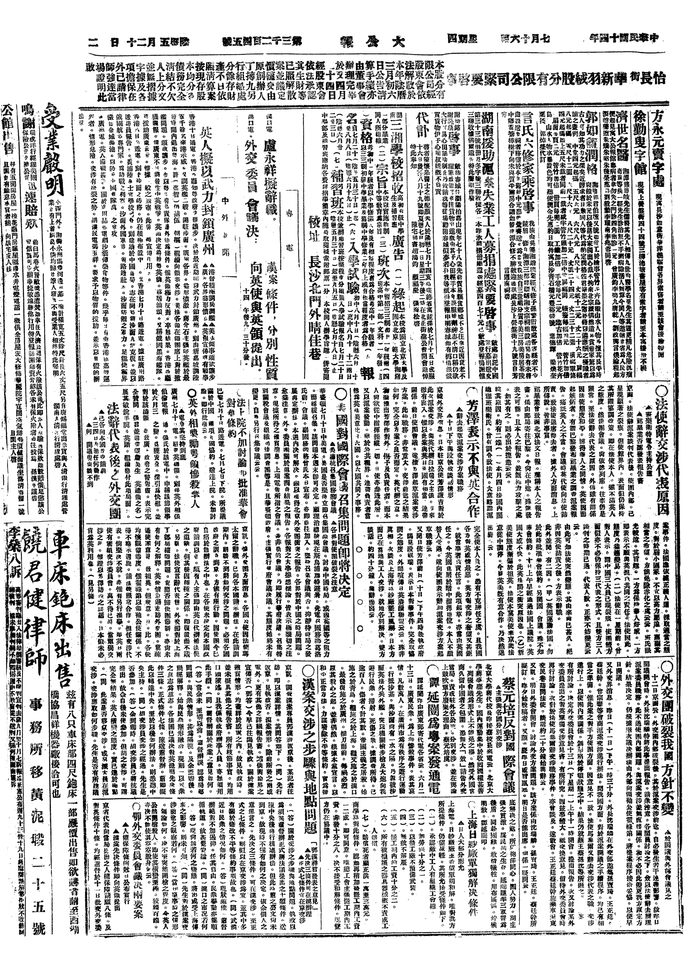 中华民国史大事记>19250716