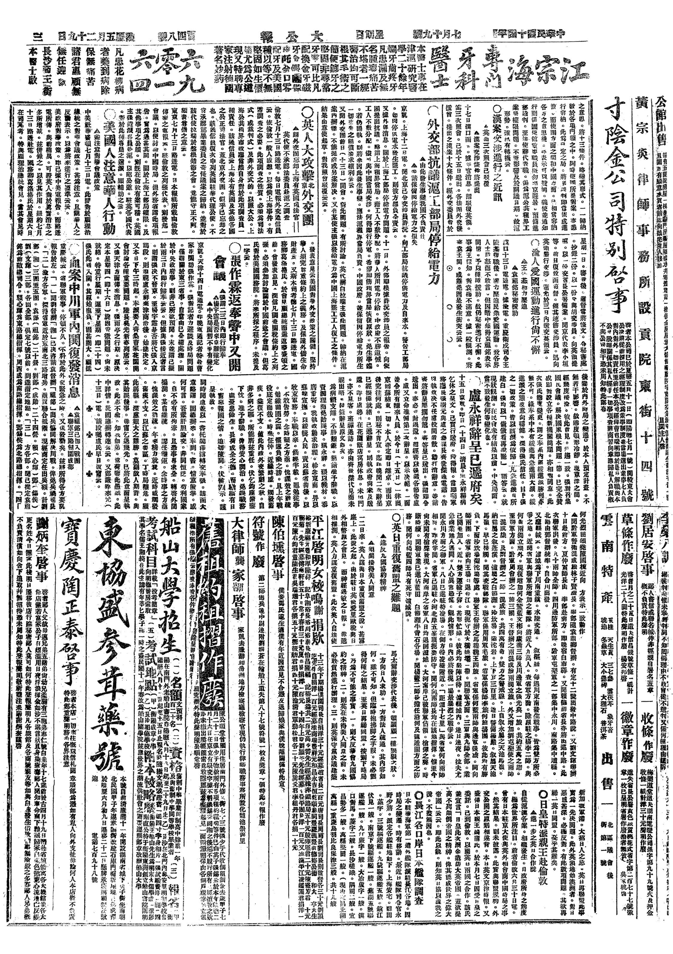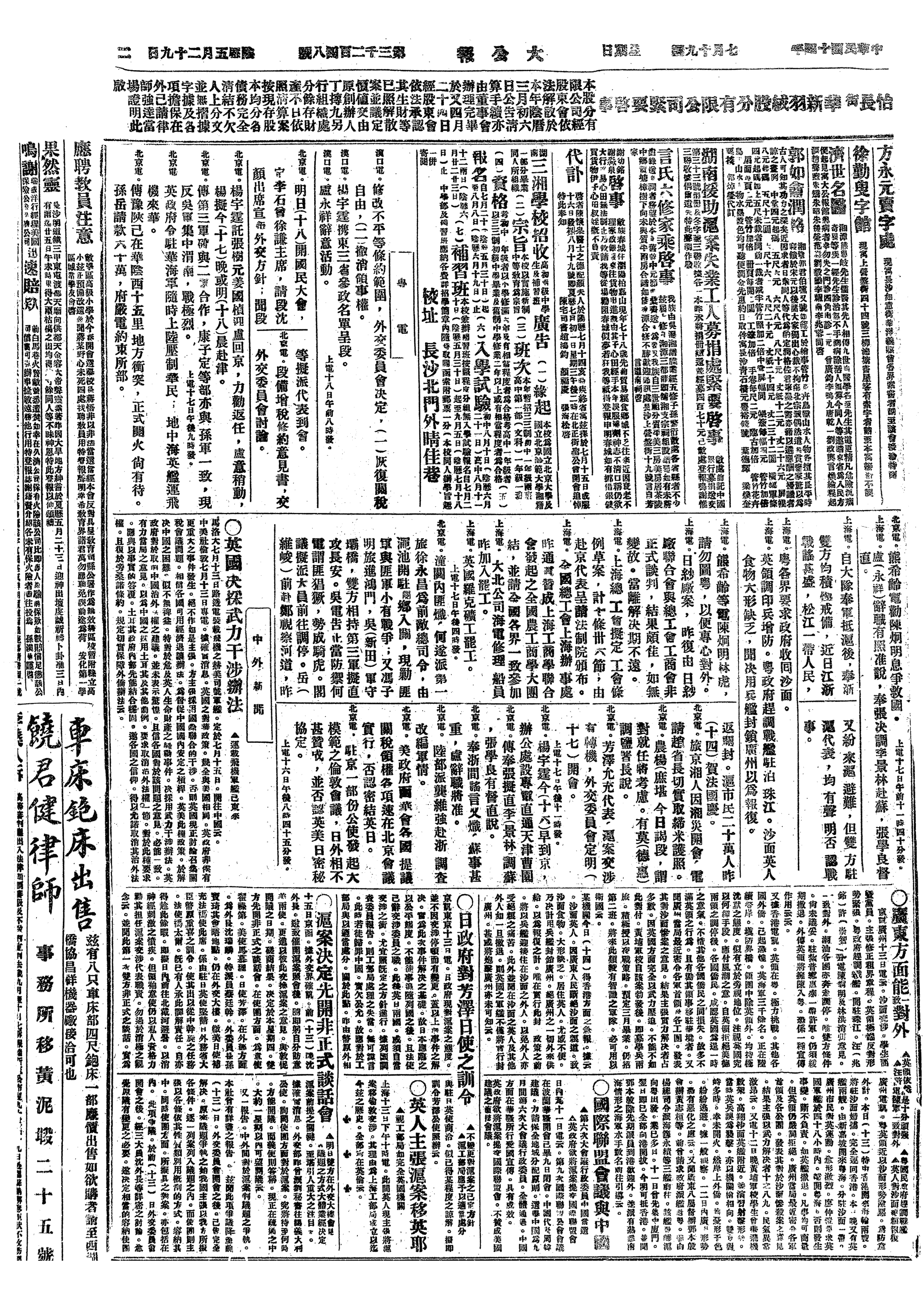 中华民国史大事记>19250719