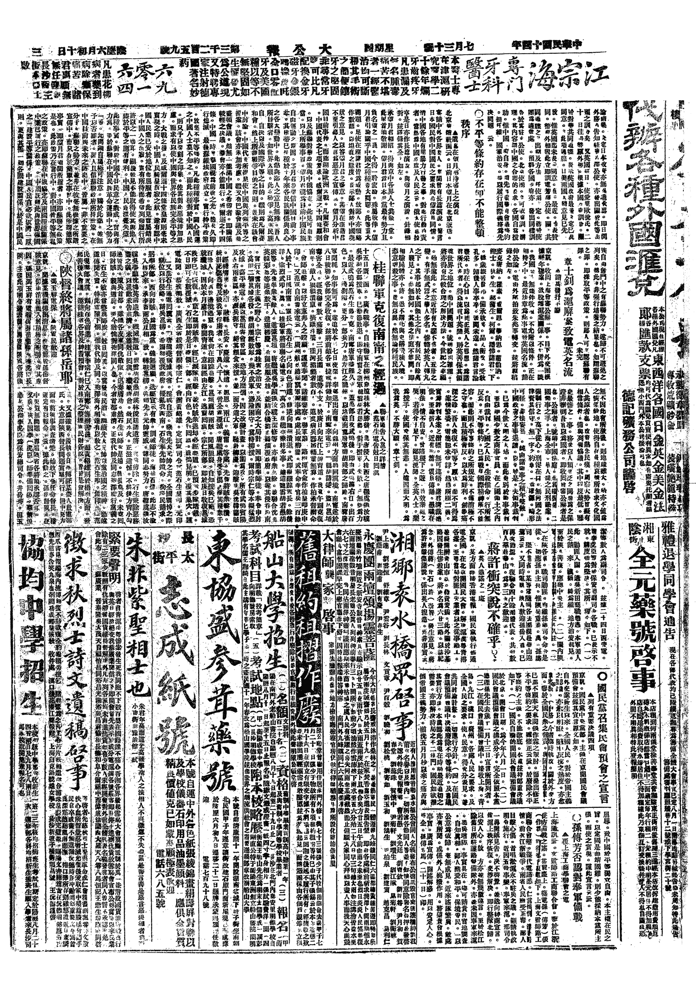 中华民国史大事记>19250730