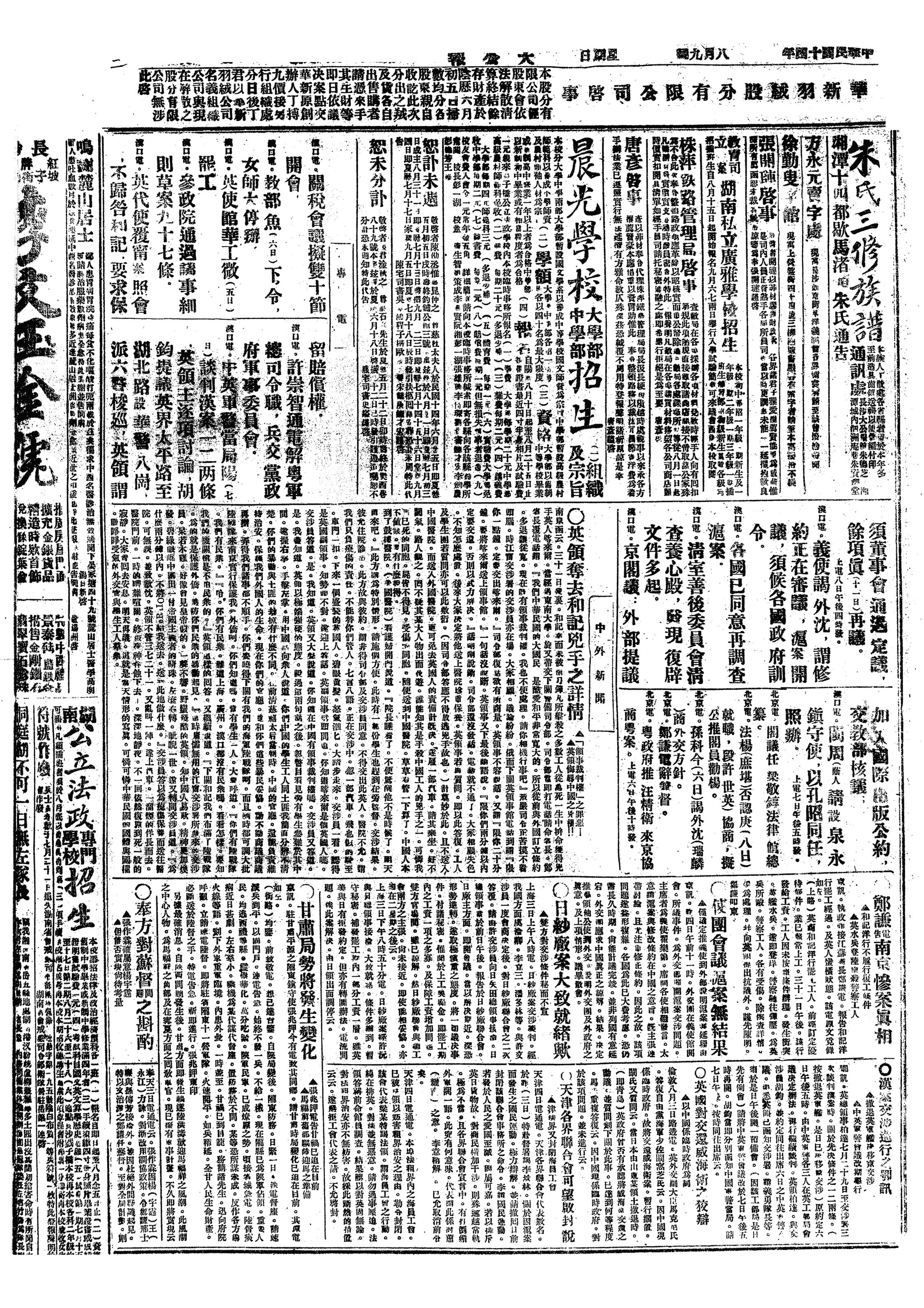 中华民国史大事记>19250809