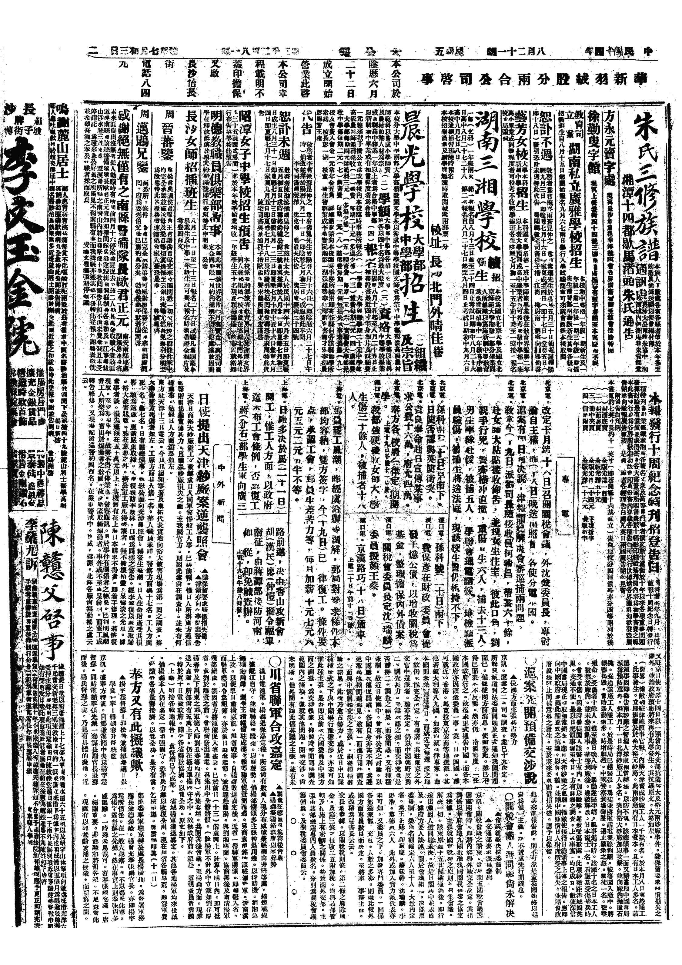 中华民国史大事记>19250821