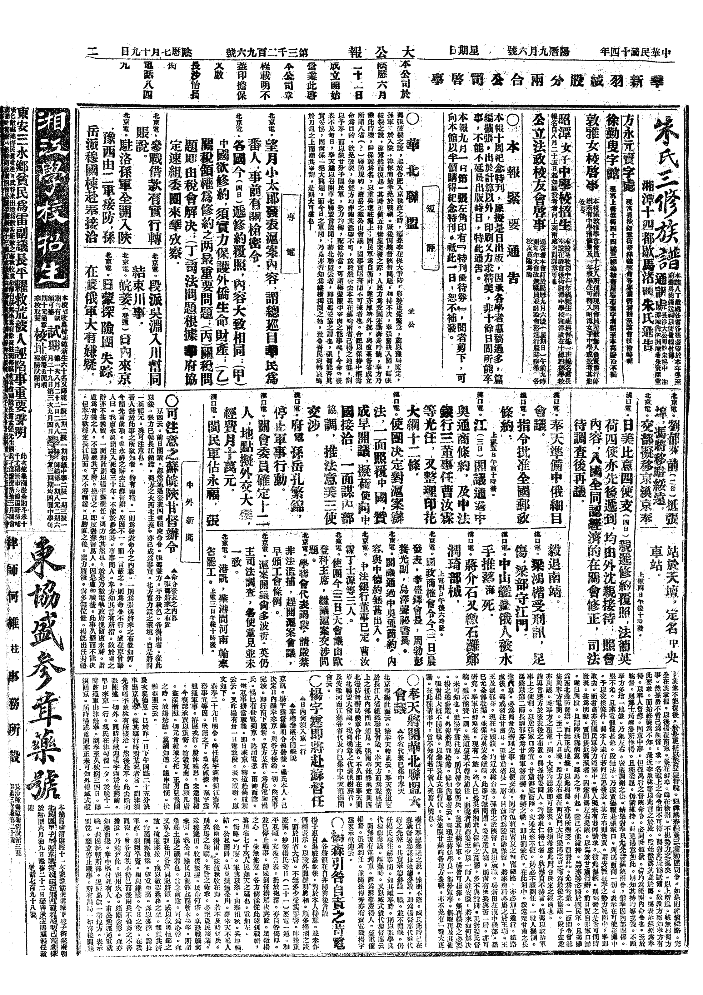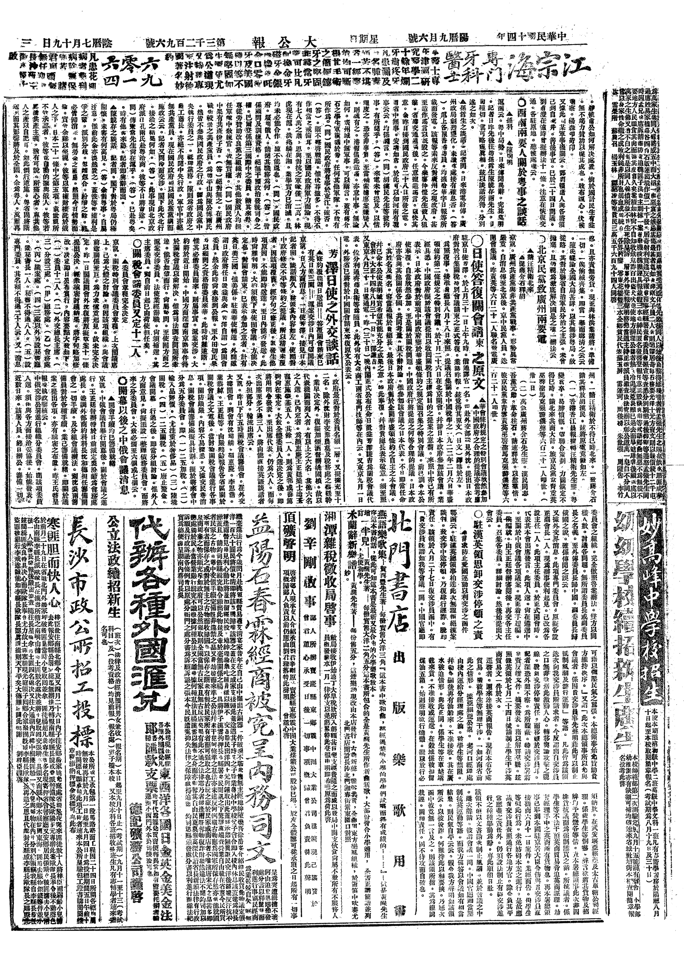 中华民国史大事记>19250906