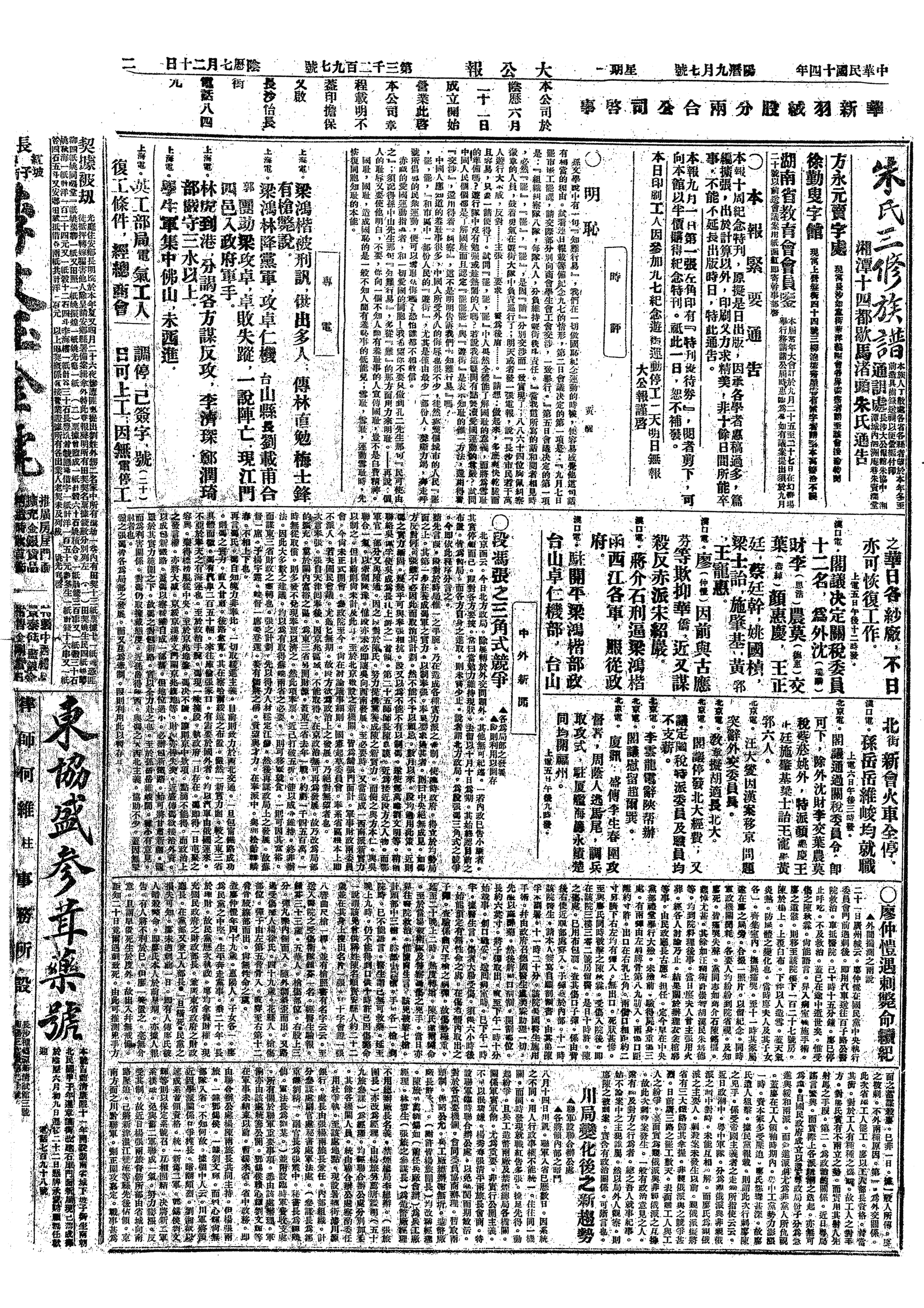 中华民国史大事记>19250907