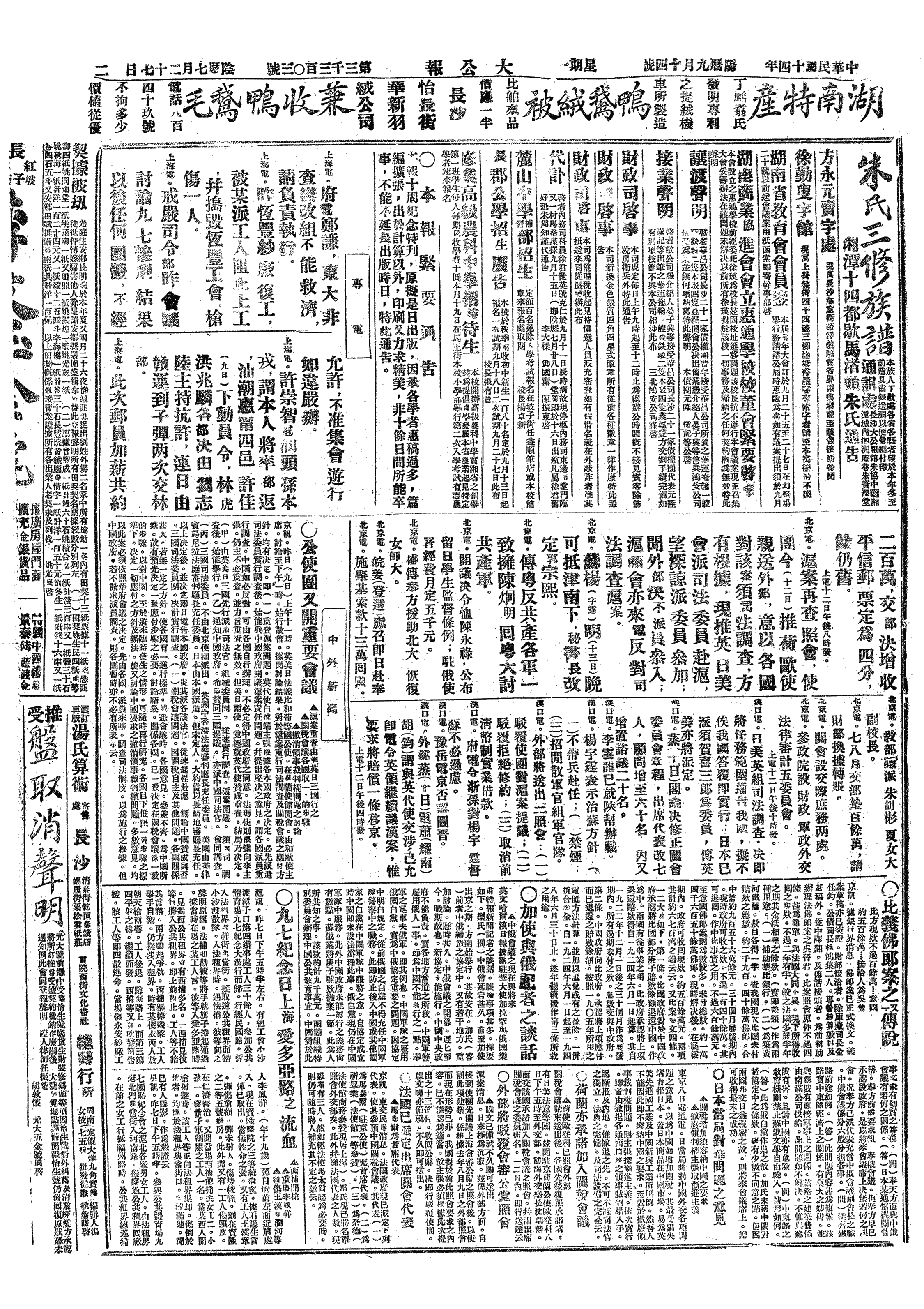 中华民国史大事记>19250914