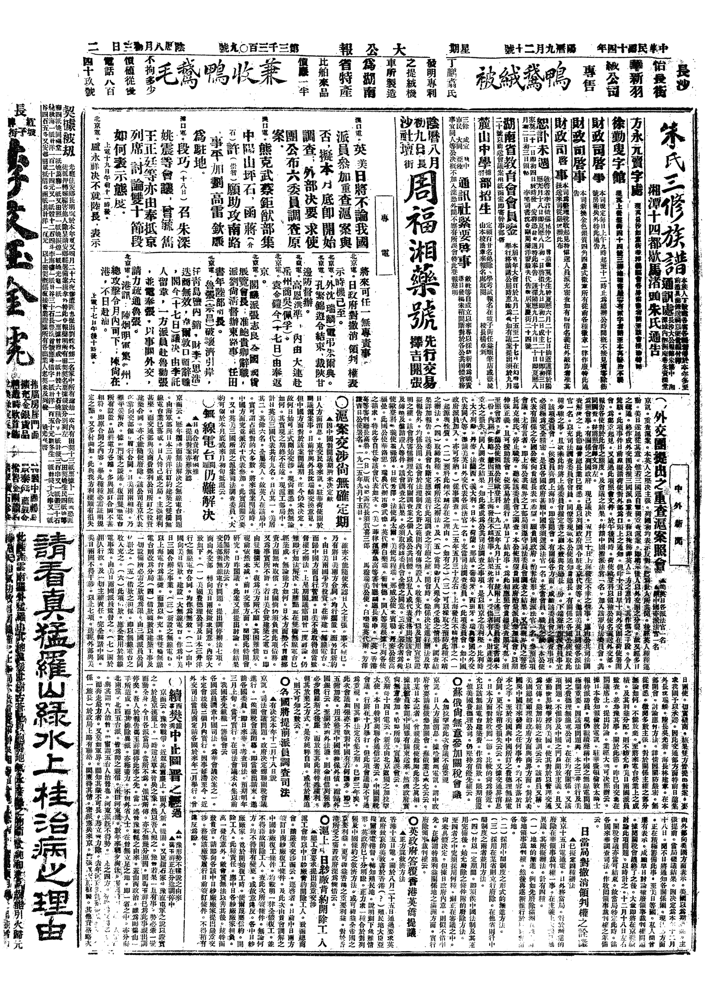中华民国史大事记>19250920