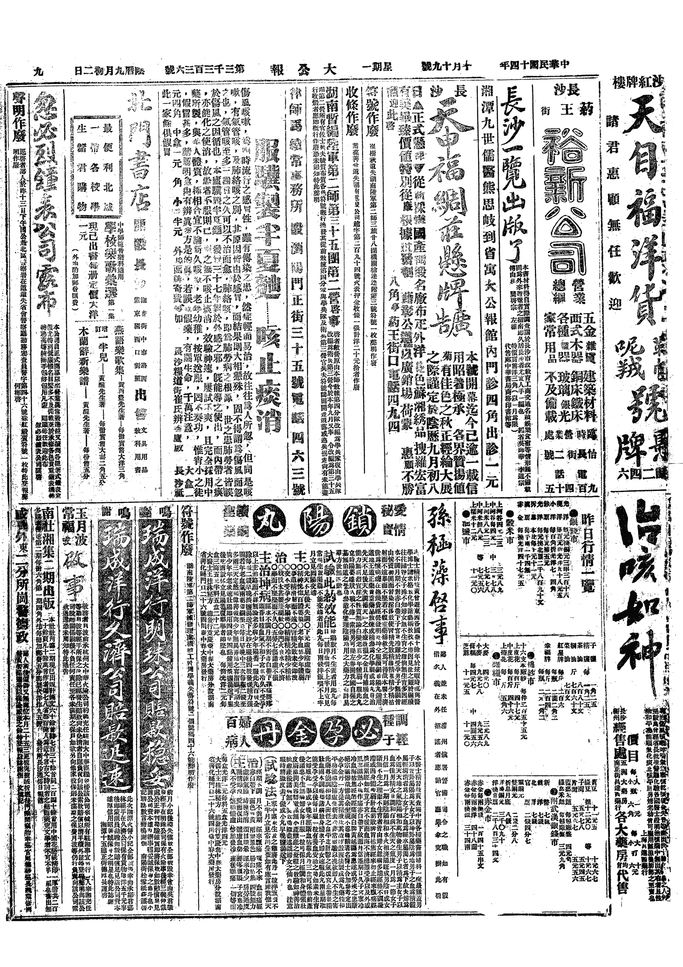 △ 吴佩孚通电宣布应孙传芳、周荫人、萧耀南电邀,定于21日到汉口共同讨奉。
