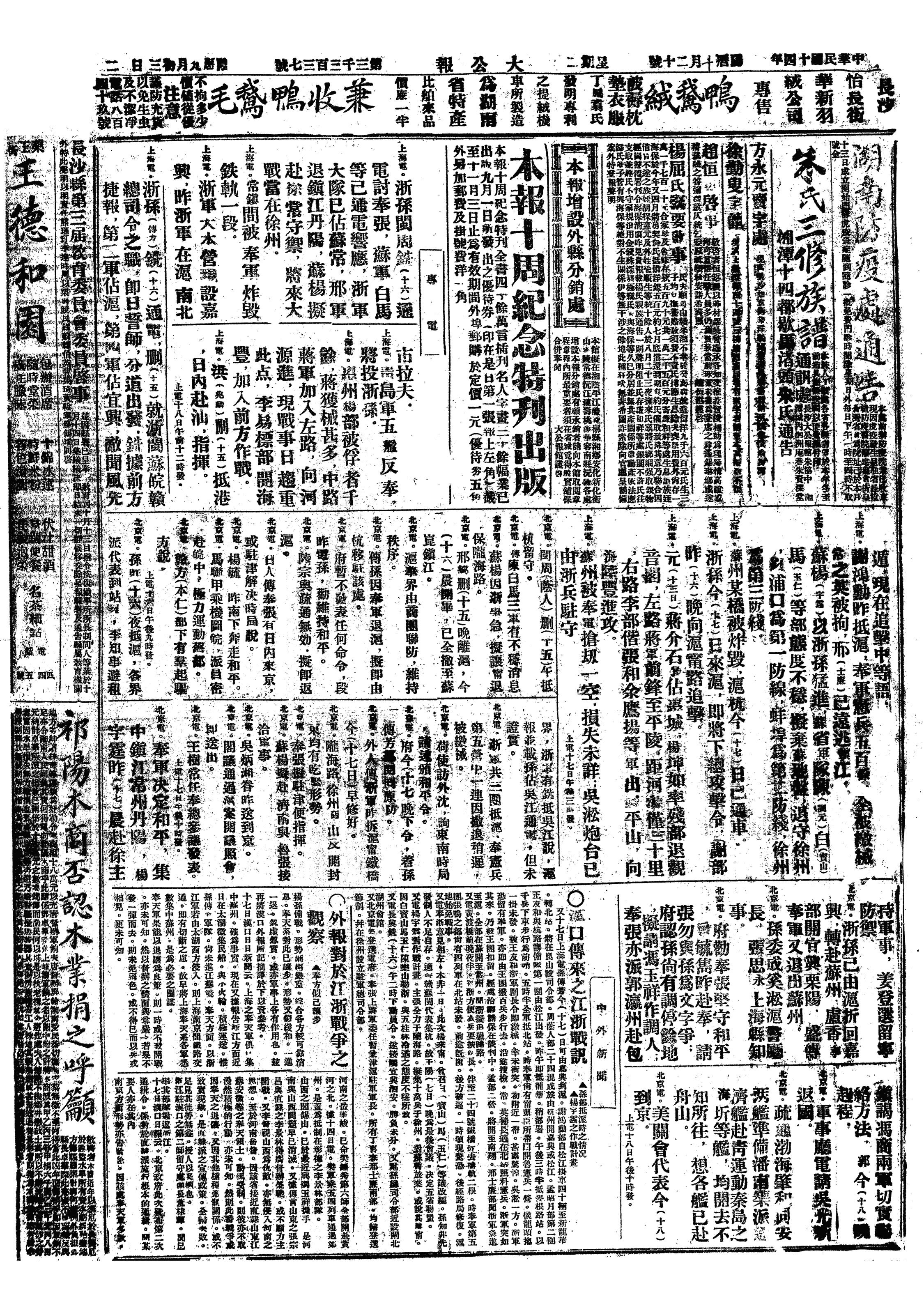 △ 孙传芳在宁发出“谨告苏省父老兄弟”通电,以“禁暴救乱”相标榜,声明除将畏罪潜逃之各职酌委人员外,“所有苏省各政,悉循原状”;