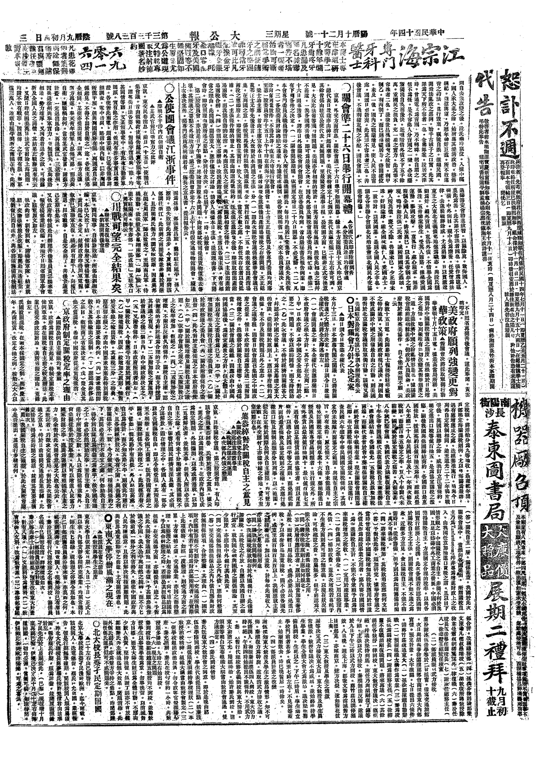 △ 全国商会联合会召开大会,讨论关税问题。