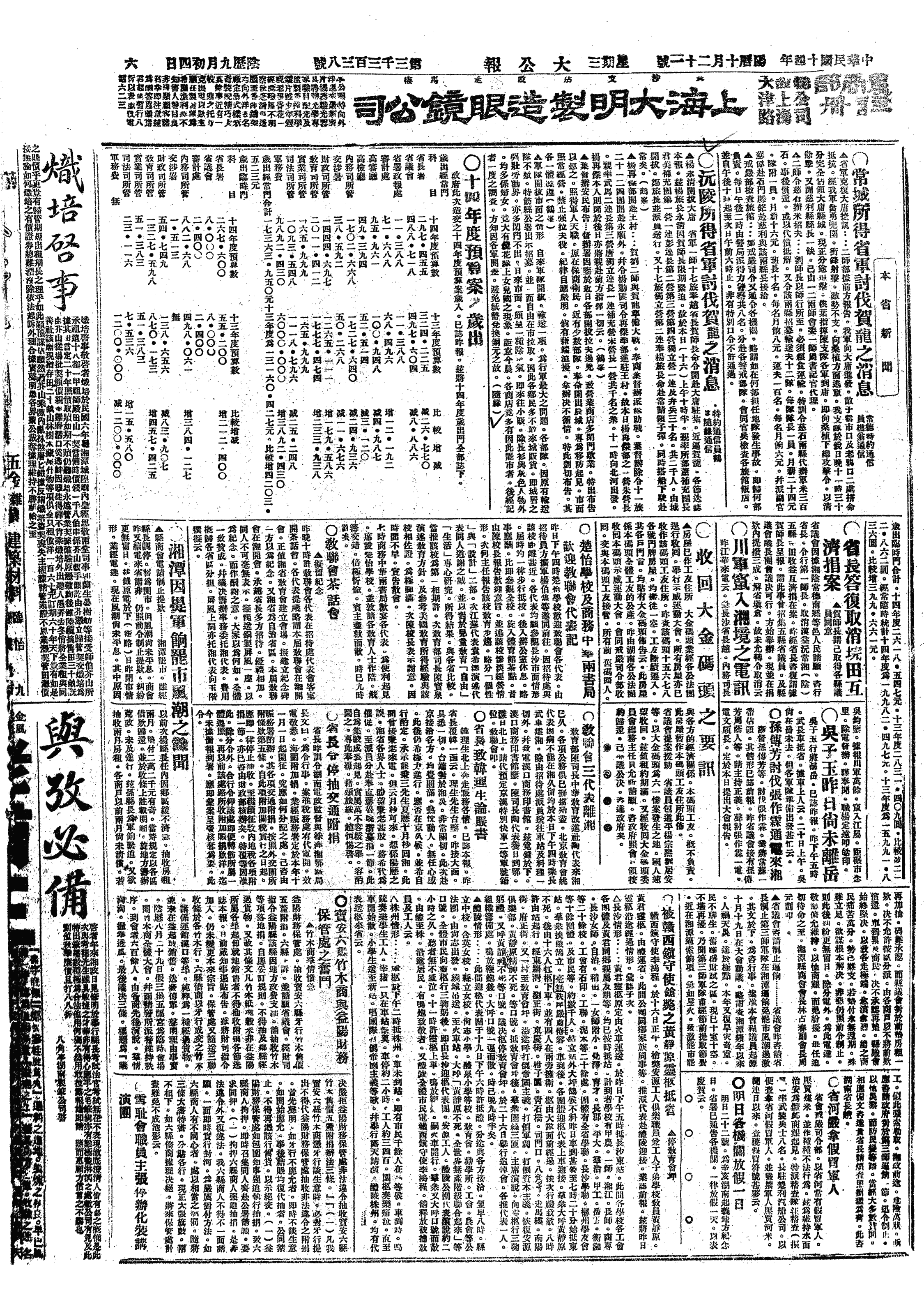 △ 吴佩孚在汉口查家墩行辕组设“讨贼联军总司令”办公处,委蒋方震为参谋处长,张其锽为秘书处长,白坚武为政务处长,张福来为营务处长,刘梦庚为机要处长,张志潭为外交处长,高恩洪为交通处长,虞际唐为副官处长,刘绍曾为军需处长;