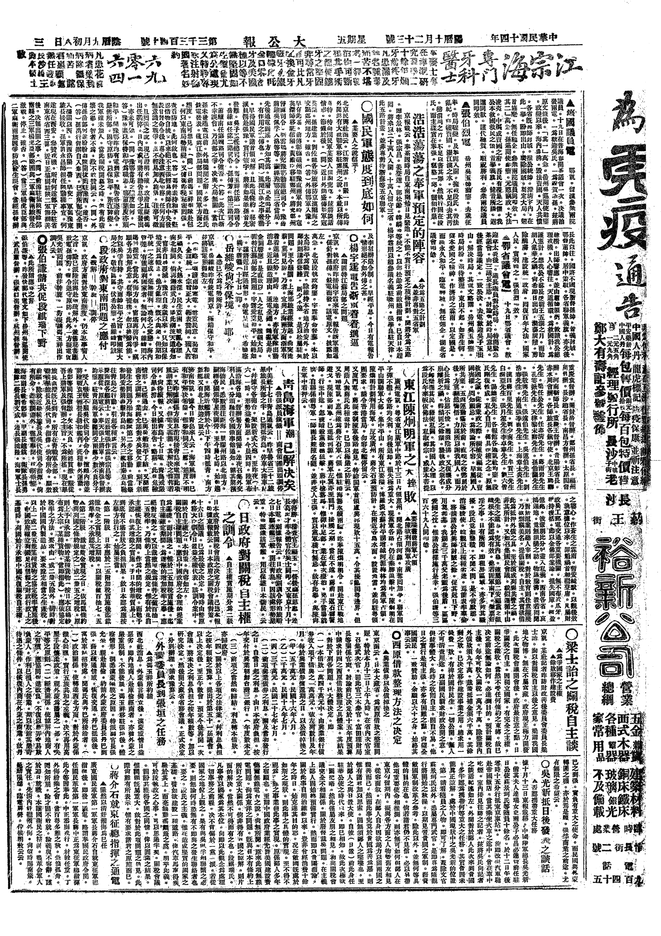中华民国史大事记>19251023