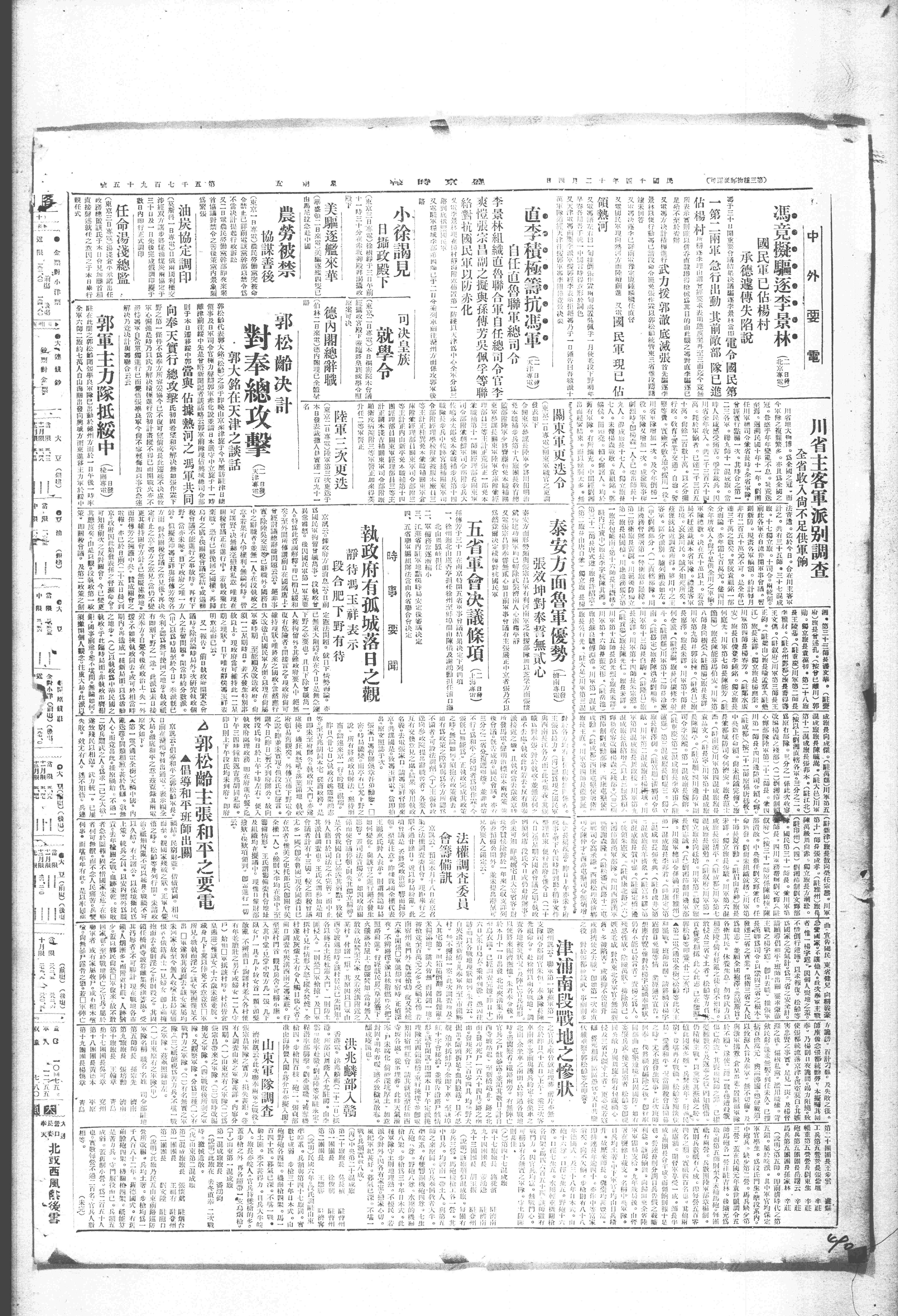 | 6049 | 116000000129A | 反奉諸役郭氏反奉與馮李衝突案 | 閻錫山史料-文件-電報-要電錄存 | 溫壽泉電閻錫山國民軍及孫傳芳部隊之行動 | 1925/12/04 | 1925/12/04 | 116-010101-0024-137 |