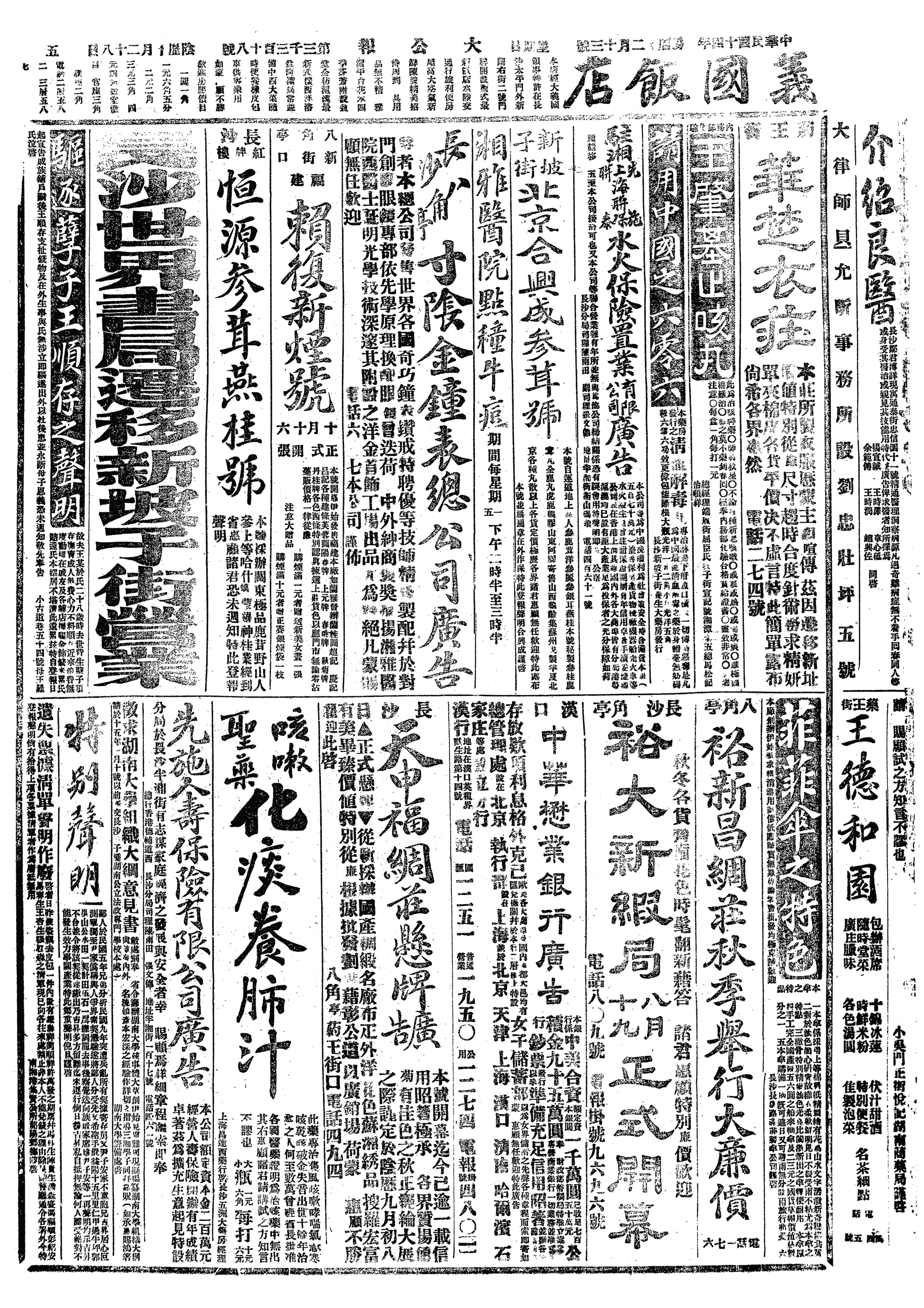 △ 萧耀南通电全国,以鄂省旱荒,地遍57县,人口达1200余万,为60年所未有之奇灾,现已成立湖北急赈会、华洋义赈会联合办事处,自任名誉会长,吁请各省协助。