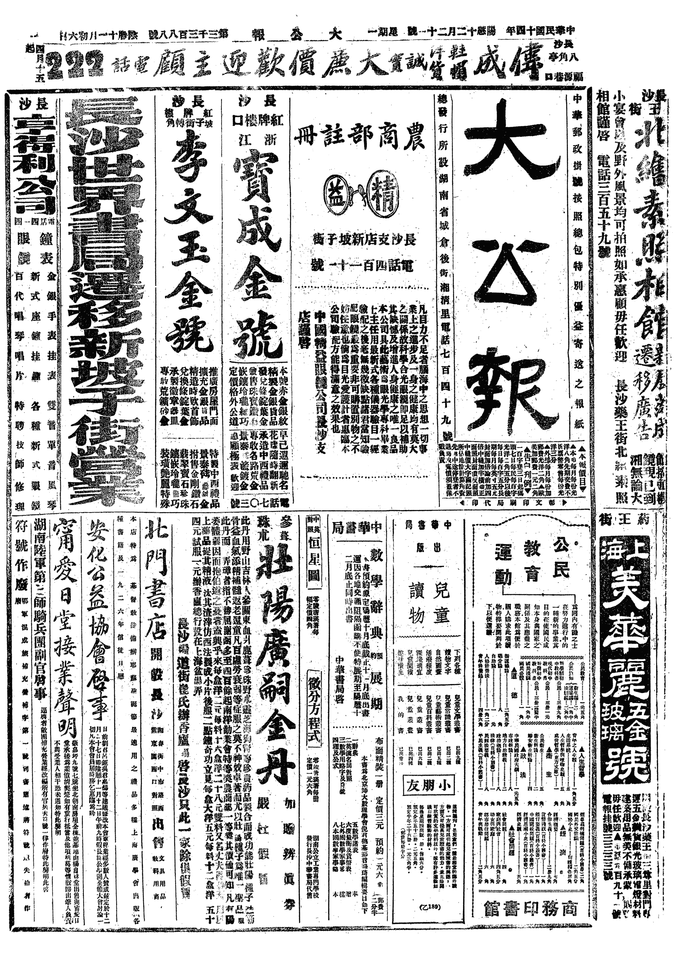 △ 上海商务印书馆印刷所、发行所二部职工因反对公司无故开除工人,宣布二次罢工。