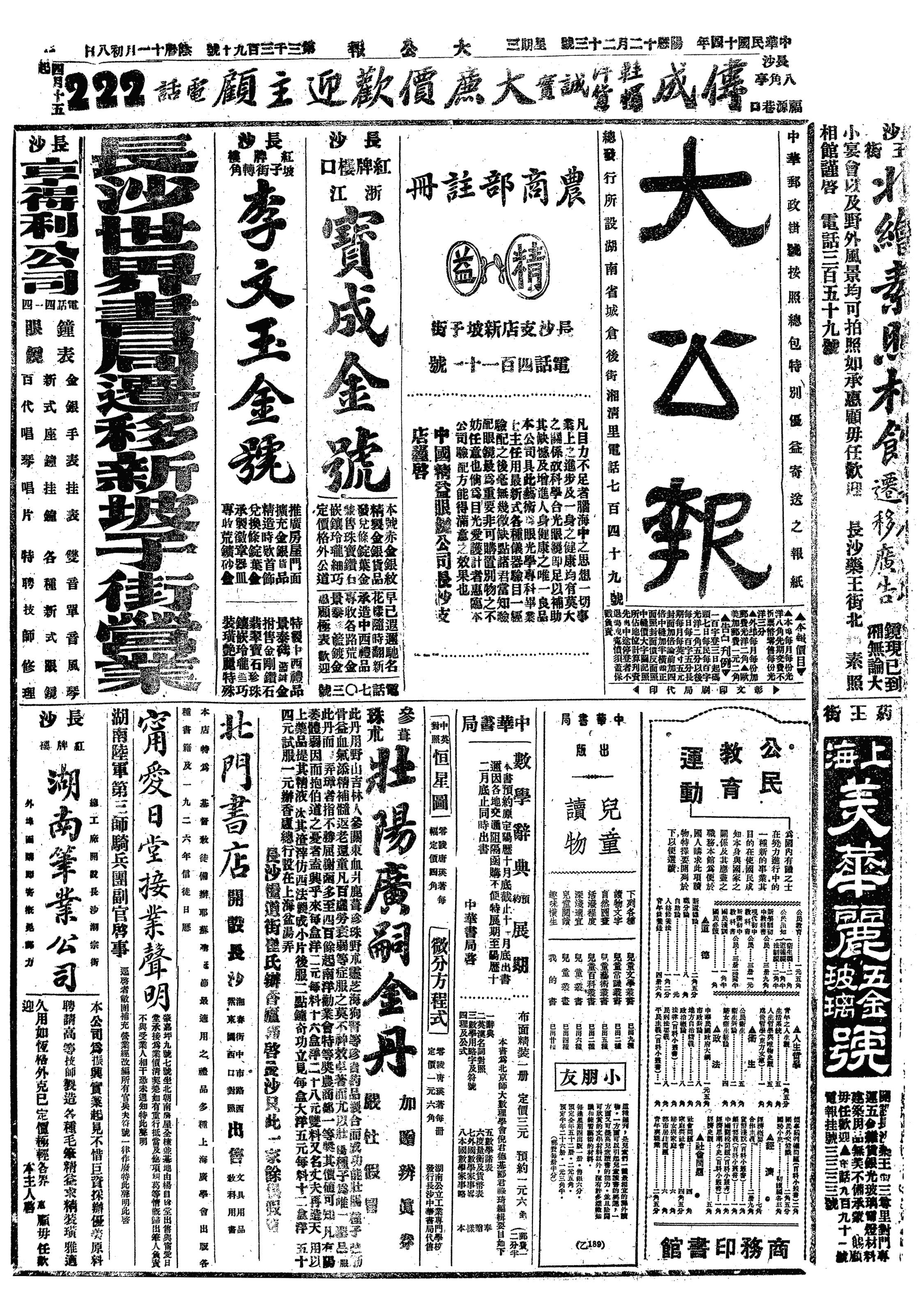 十时出,至大沙头三军部,见益之及其政治部朱克敬,醴陵人也。