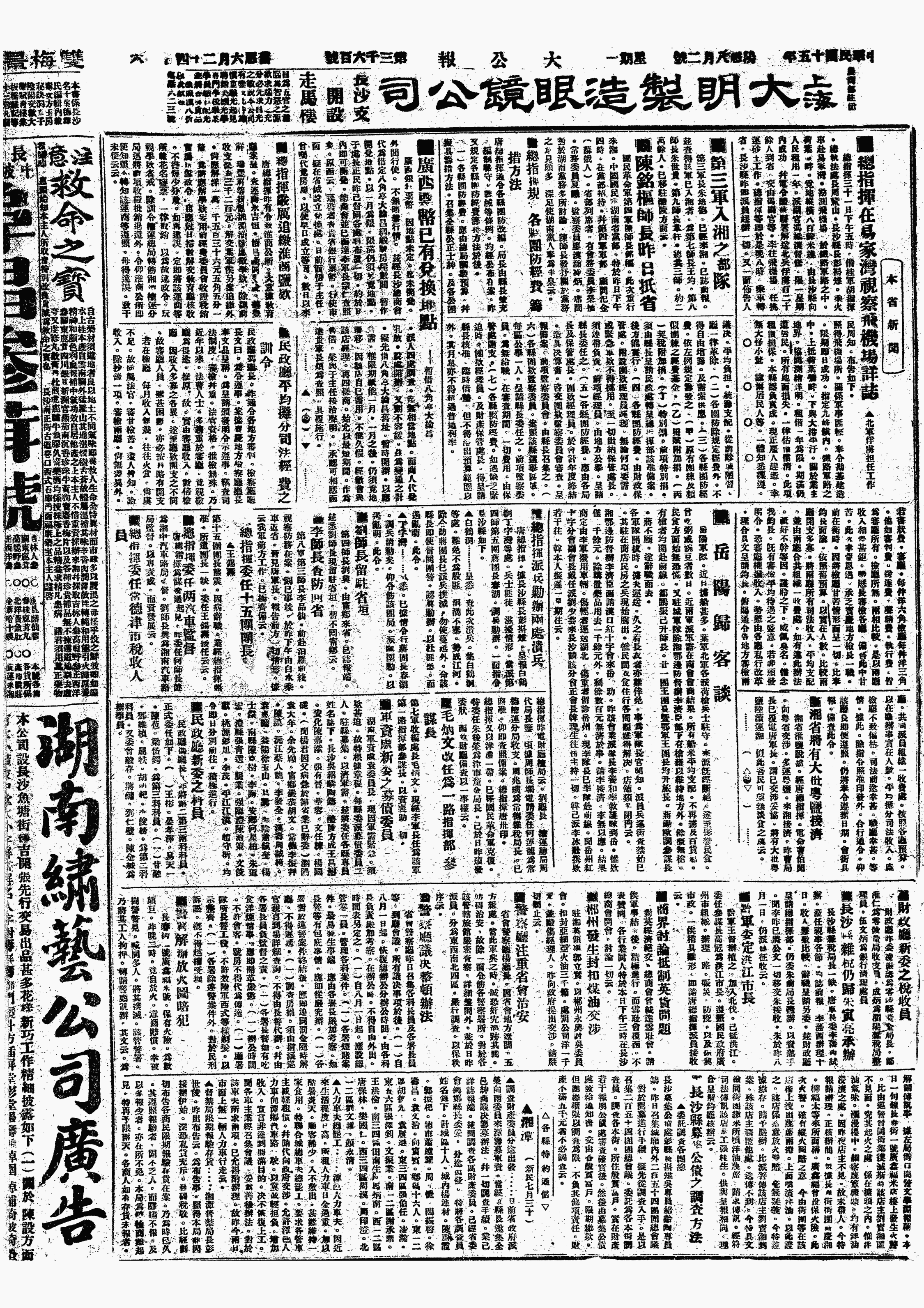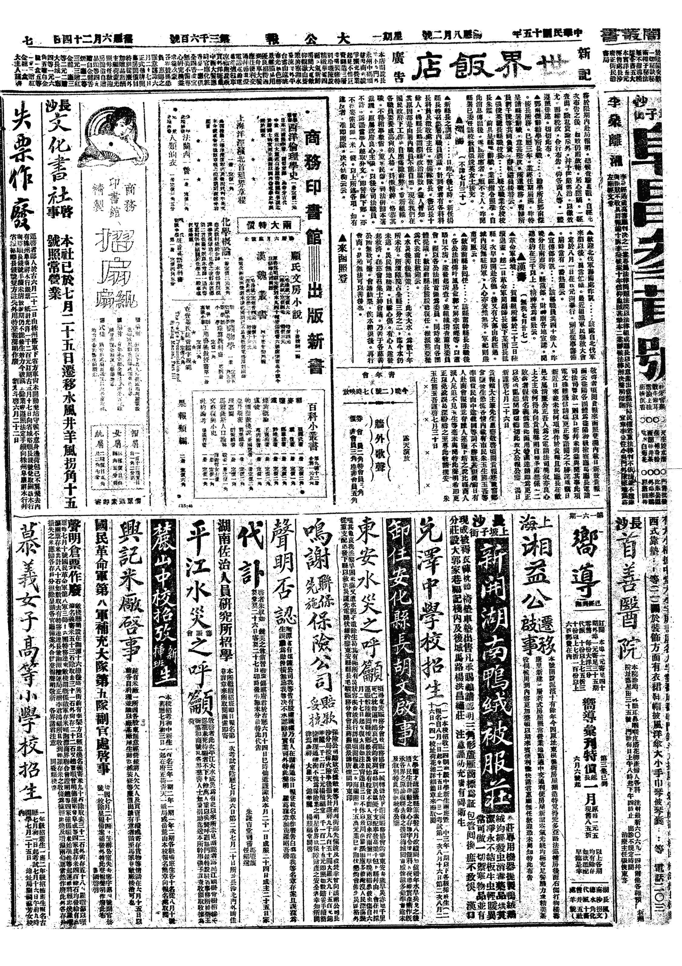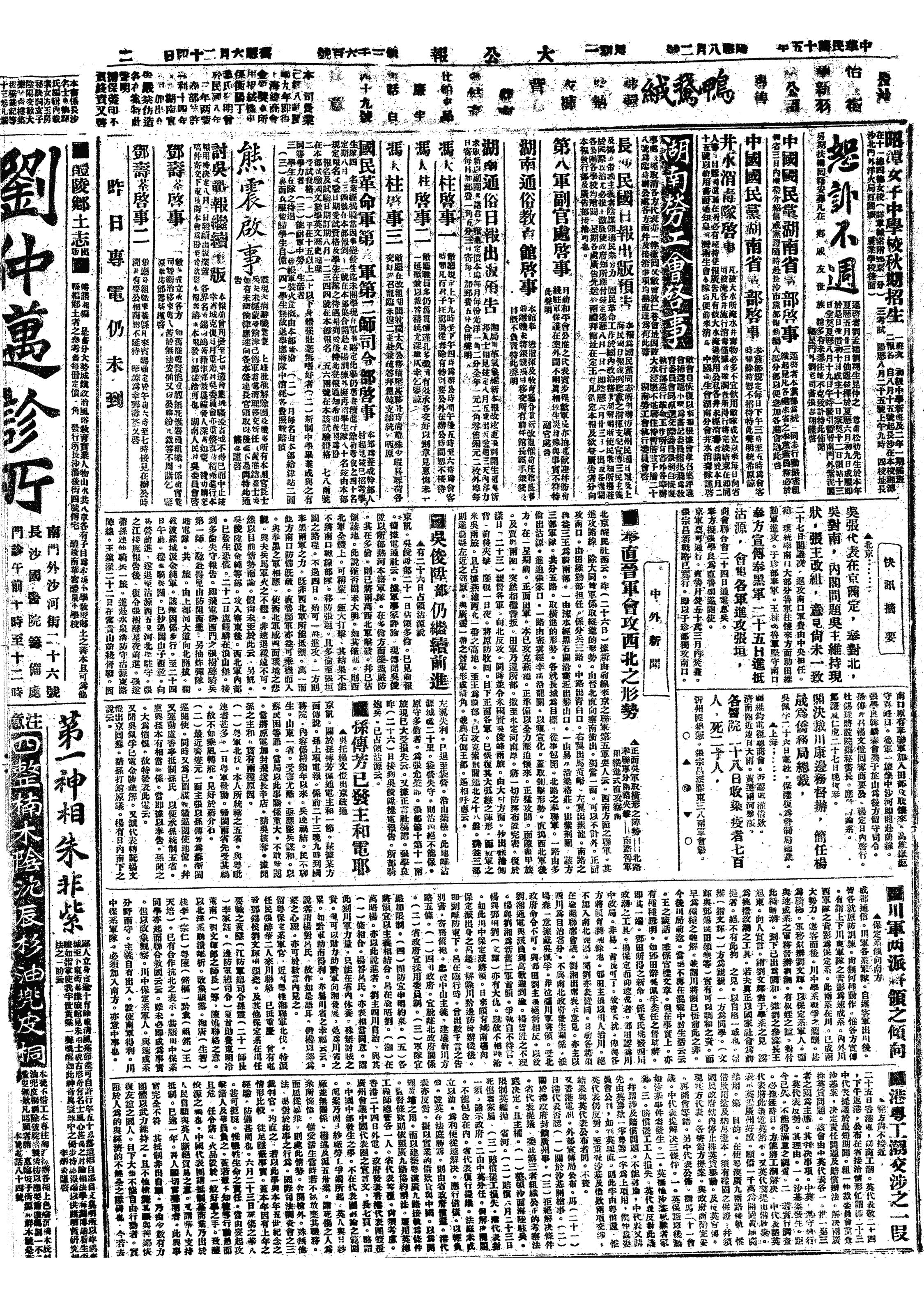 中华民国史大事记>19260802