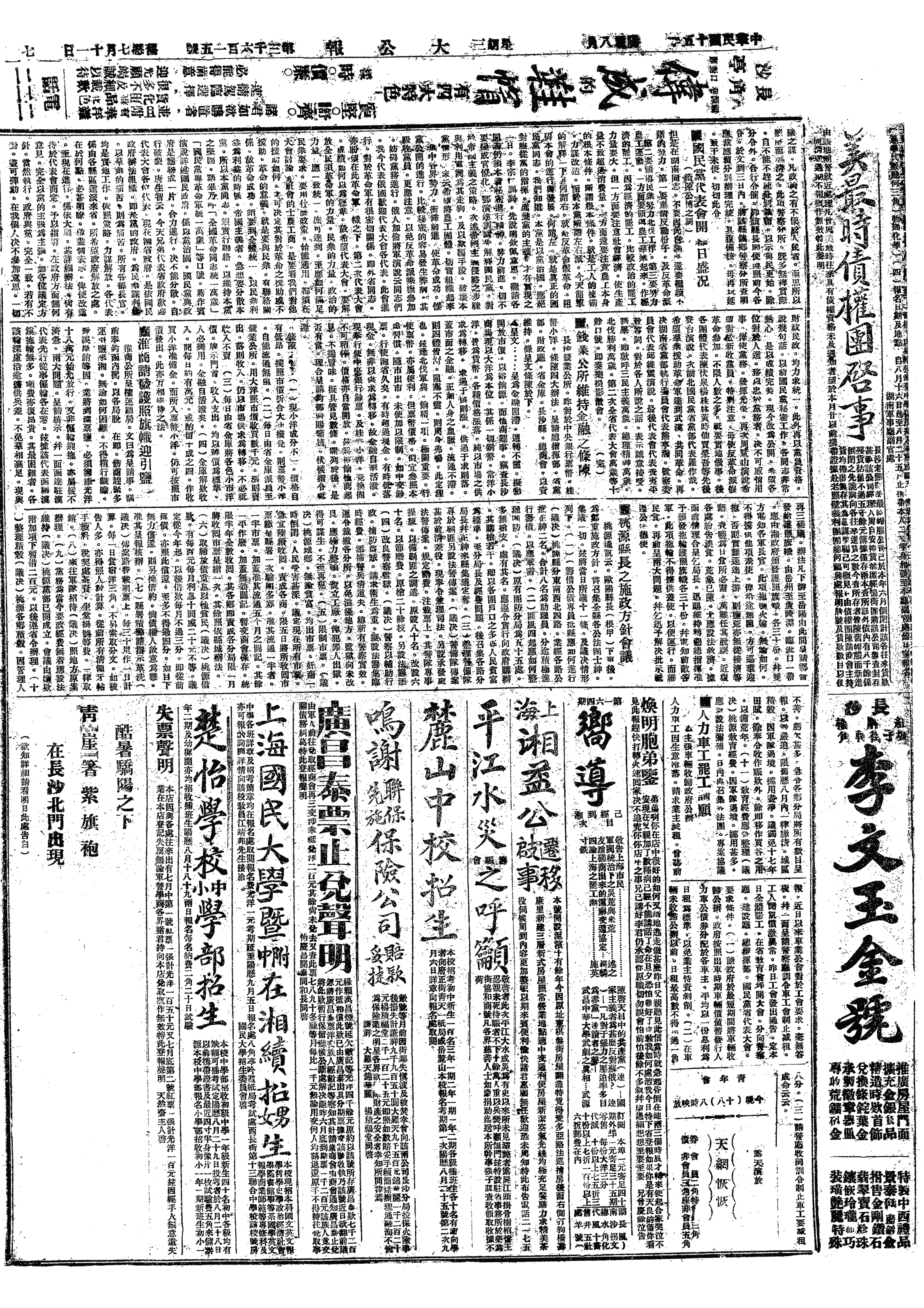 中华民国史大事记>19260818
