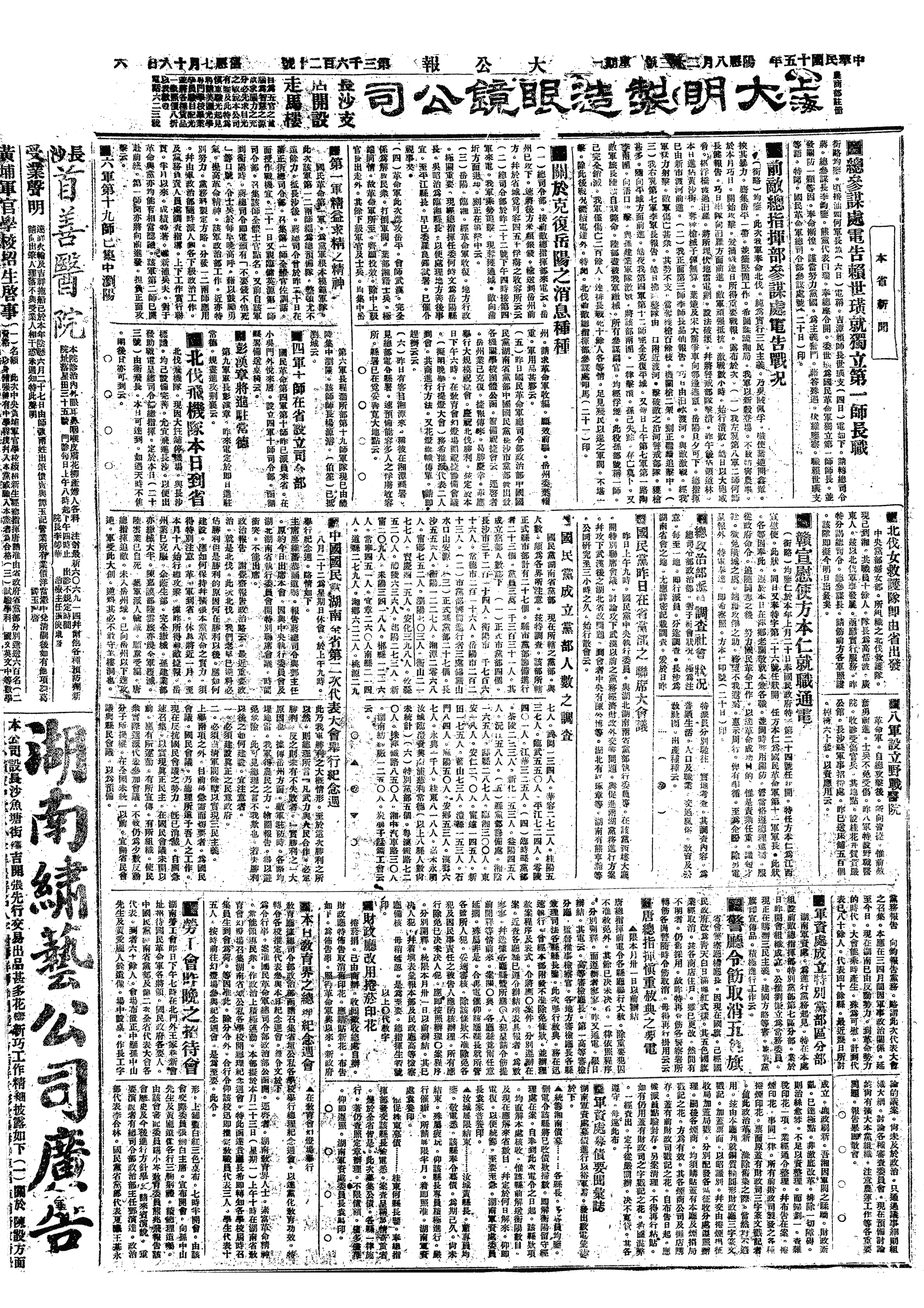 国民革命军北伐大事记>19260823