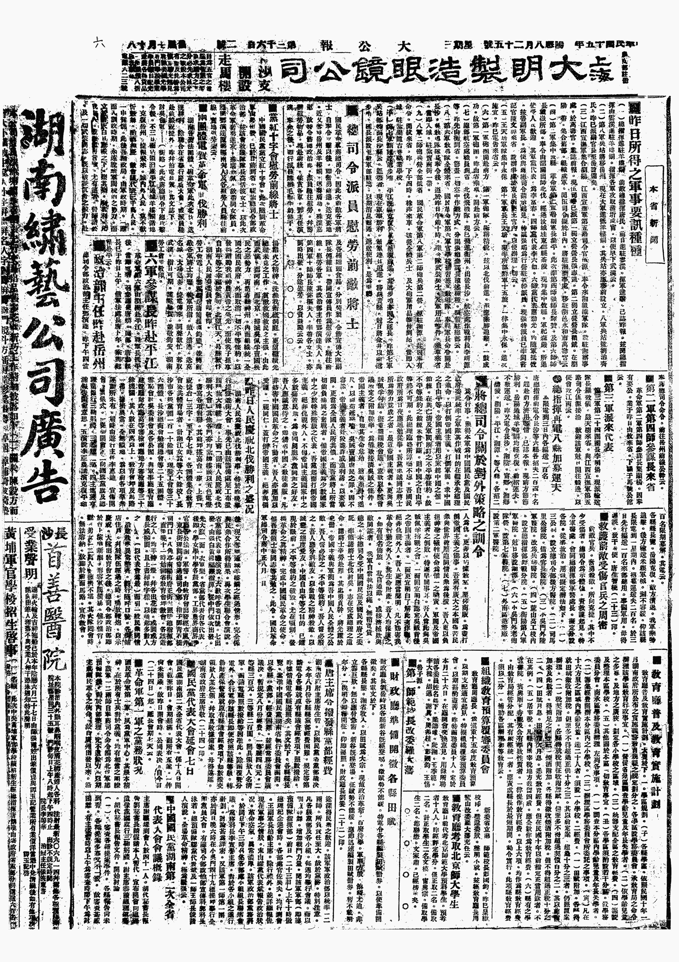 中华民国史大事记>19260825