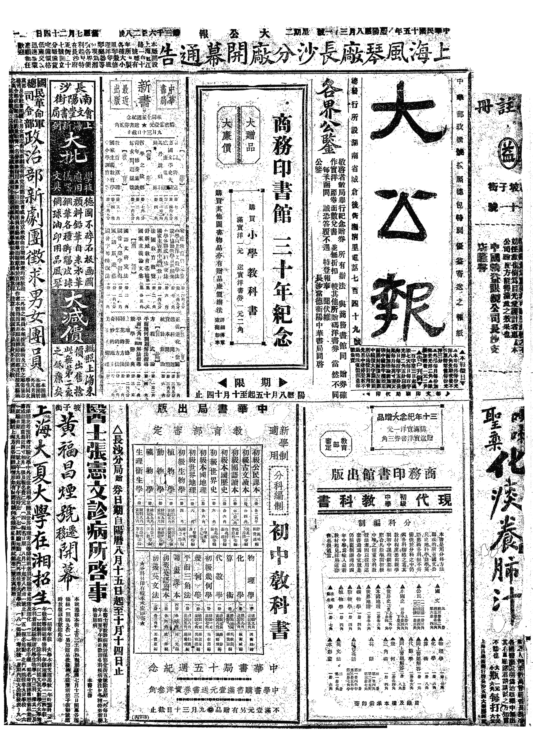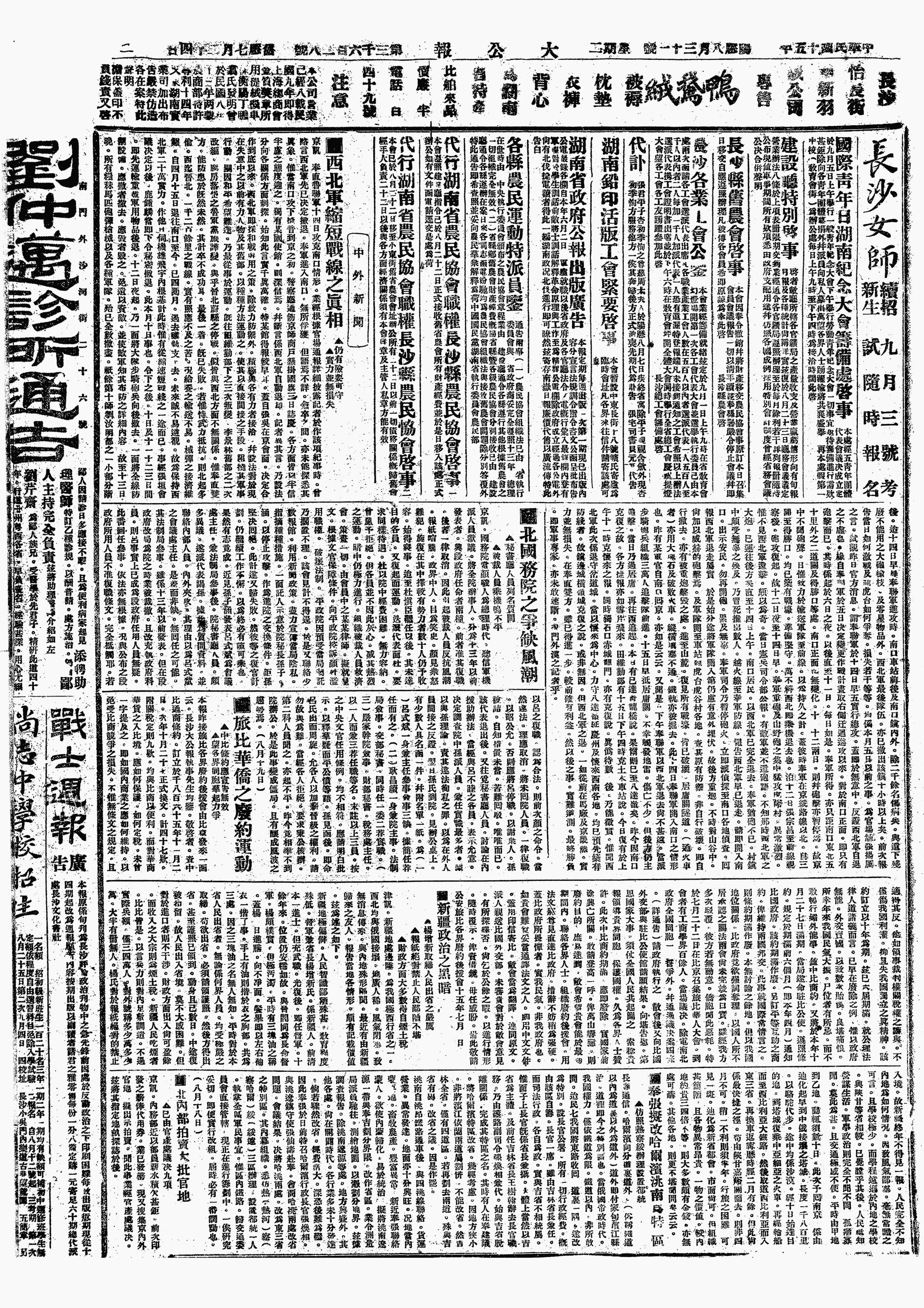 中华民国史大事记>19260831