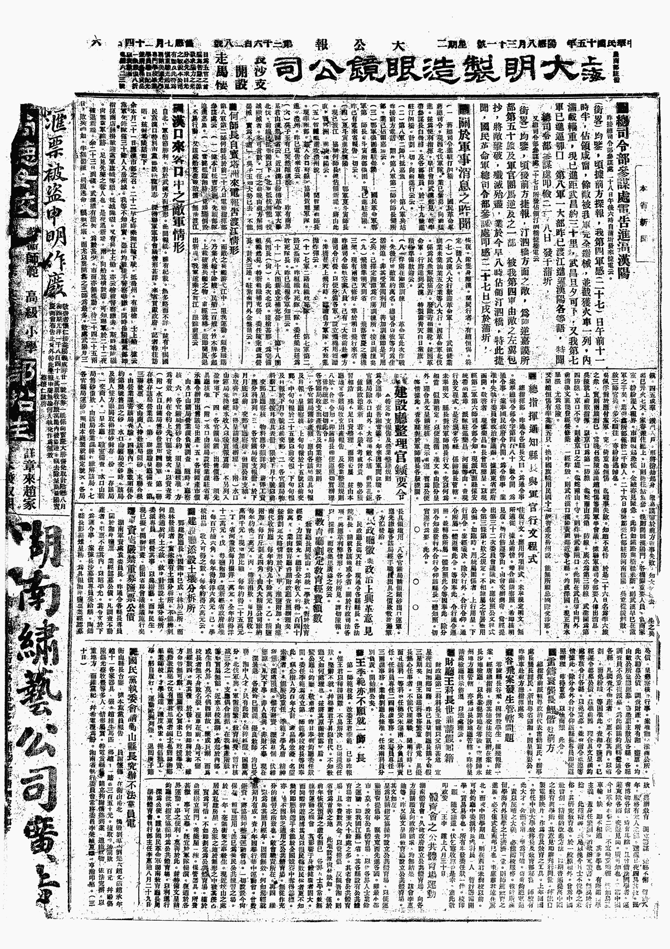 国民革命军北伐大事记>19260831