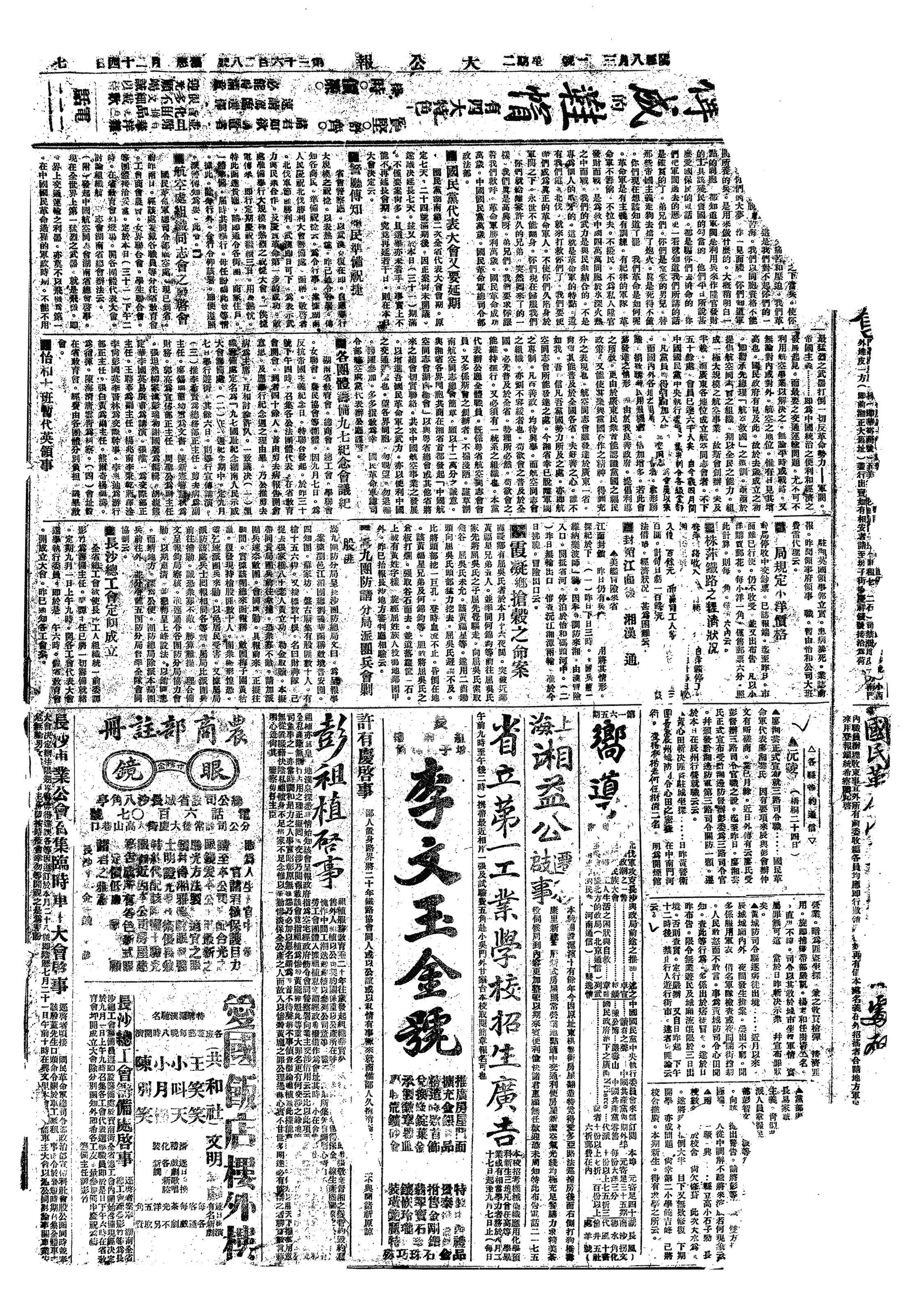 “今后吾湘之重要工作,必须建立革命的民权,以辅助监督革命之政府,摧毁封建社会之基础,巩固国民革命之基础。”