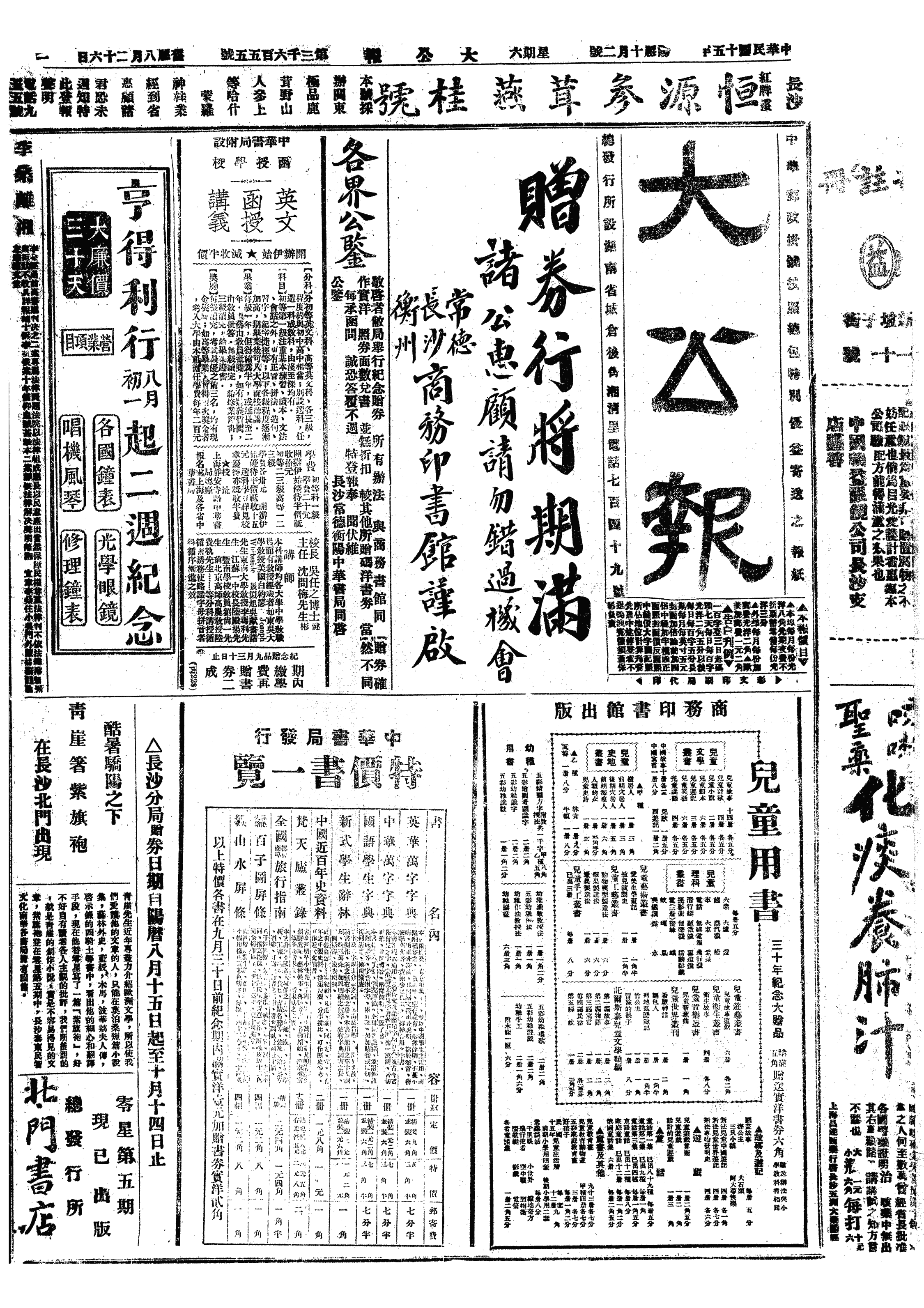 令人往请谢先生勤吾。九时过成大,十时开会。表方、晓和,予及学章、伯杰均有演说。午后二时用饭毕即归。四女来信,08月24日寄。五女于08月十六号于归。结婚日男女来宾约三百余人。女家主婚为二叔,证婚人为袁乃宽。结婚照片,明、后日当寄上。京中教育费无着,力山恐将千本月赴沪,另图发展。四女留京,与五女同住,另租稍宽大之屋也。七女来信,中07月23日寄。07月初09日平安抵沪。亚东由无退派往东台任职,七女即住三女处。此后每年可以储蓄数百元矣。闻五女婿家丰裕,其家患匪,每月团费须千金,外购枪支子弹,殊可叹也。