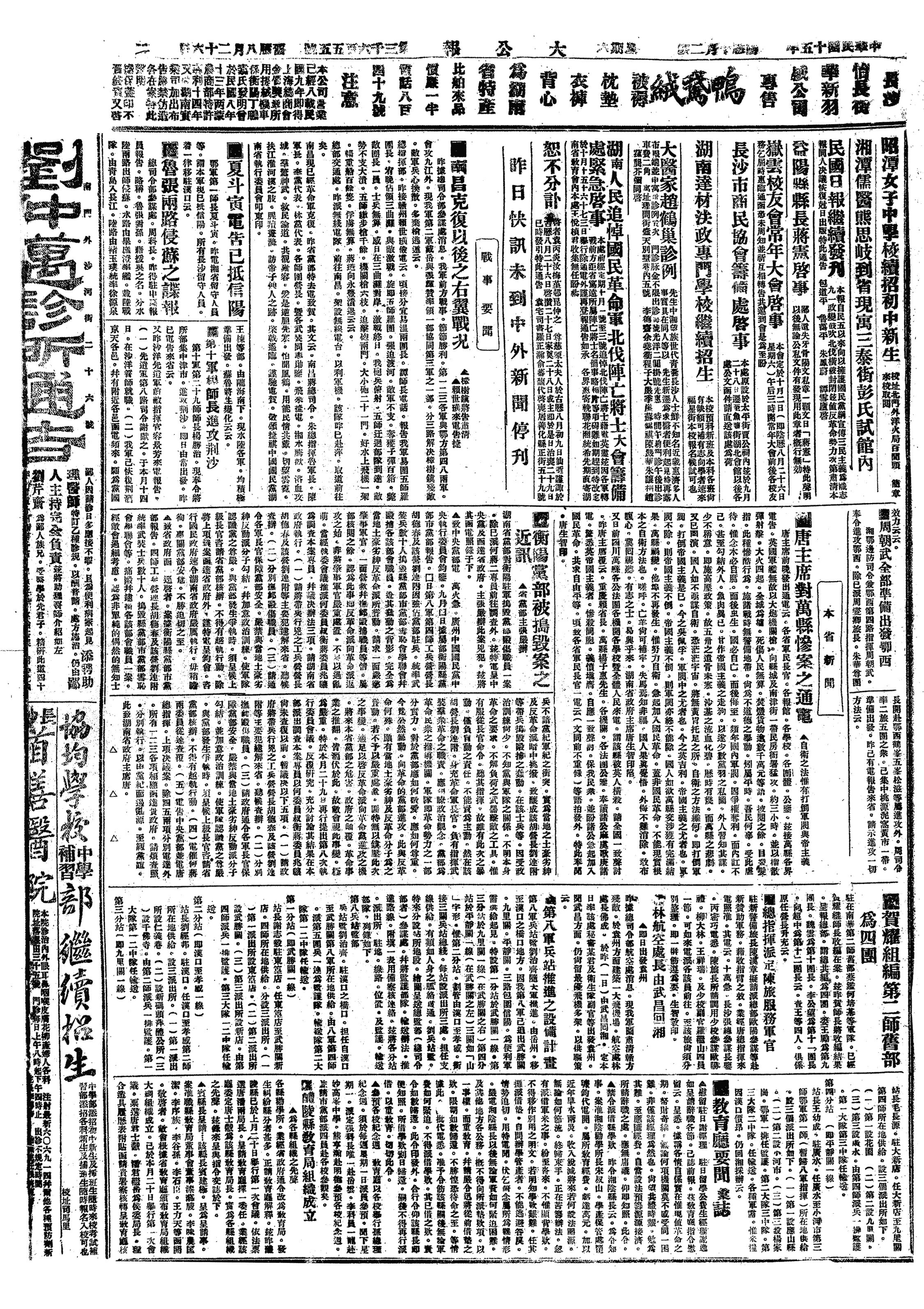 中华民国史大事记>19261002
