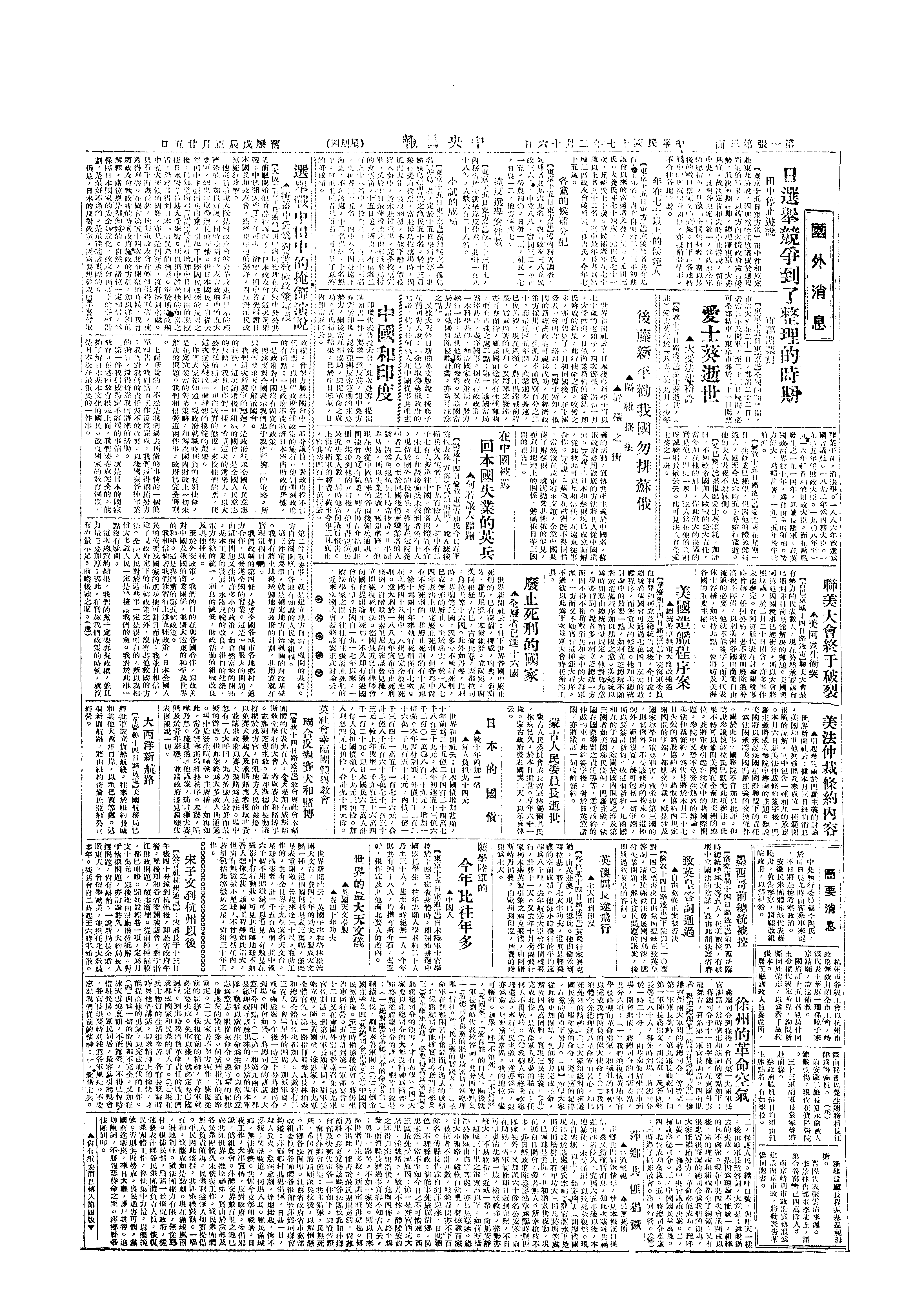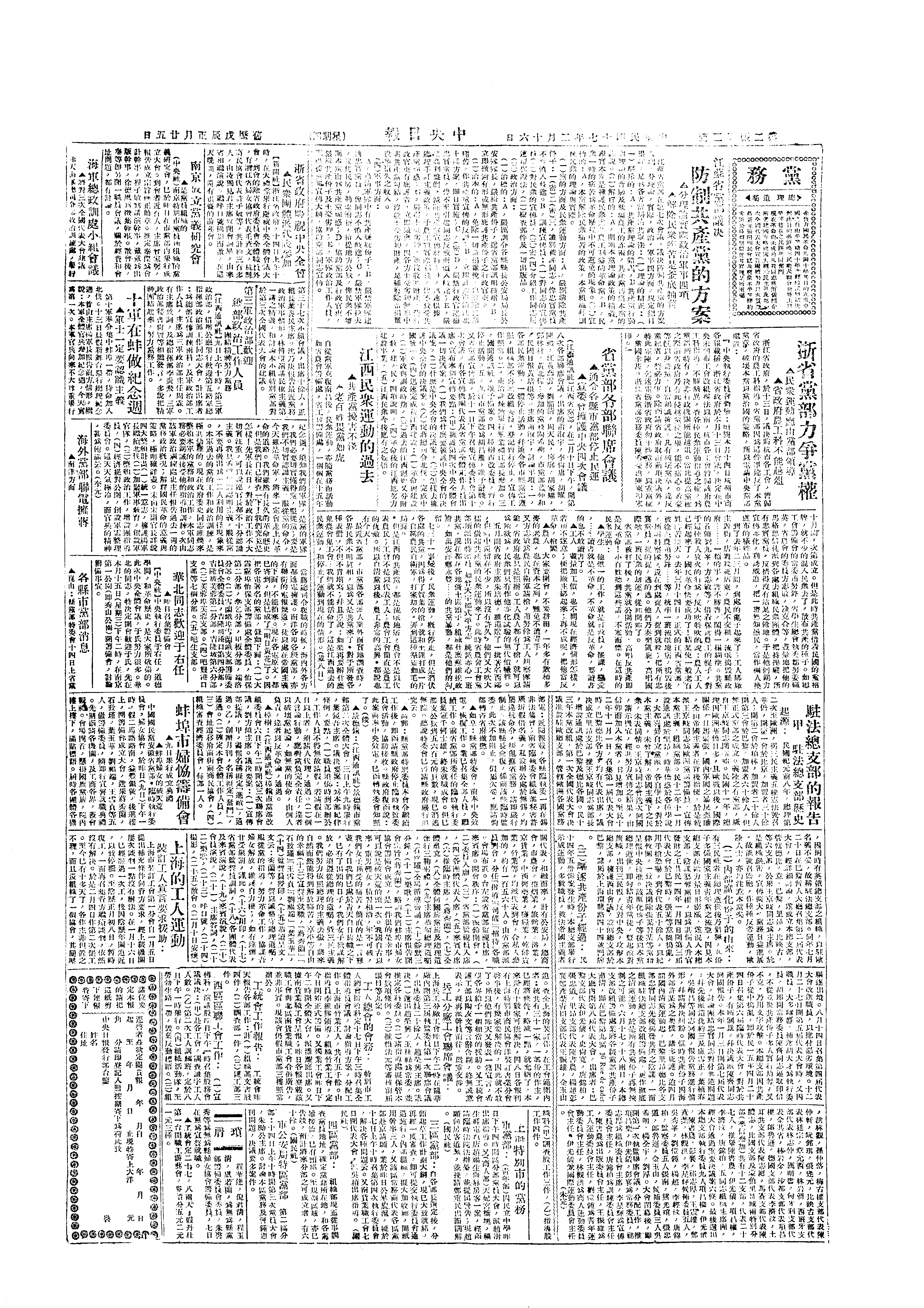 △ 国民党中央党务委员会第117次会议议决,遵照四中全会决议,各级党部暂停活动。