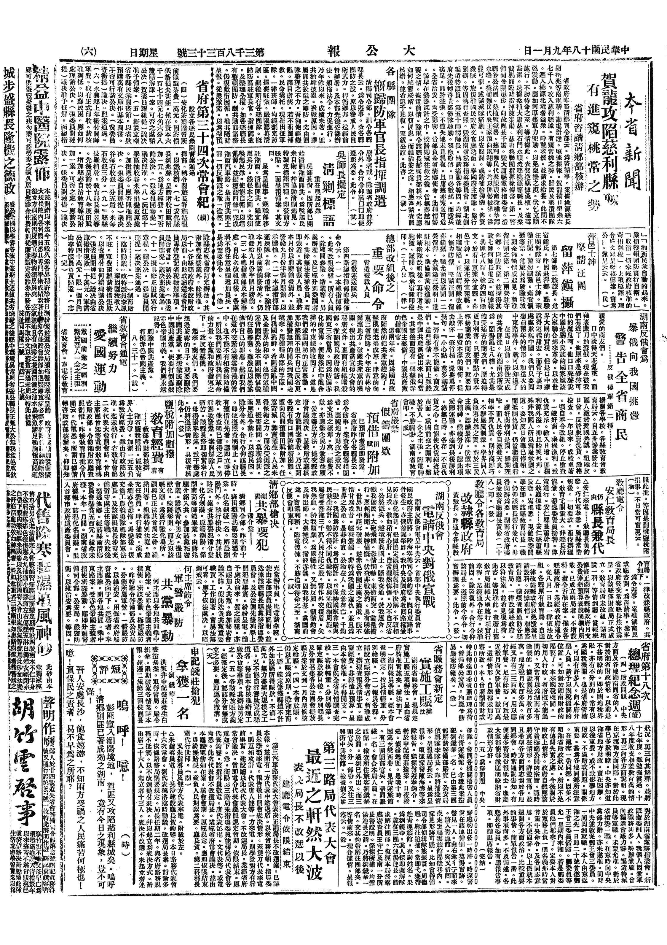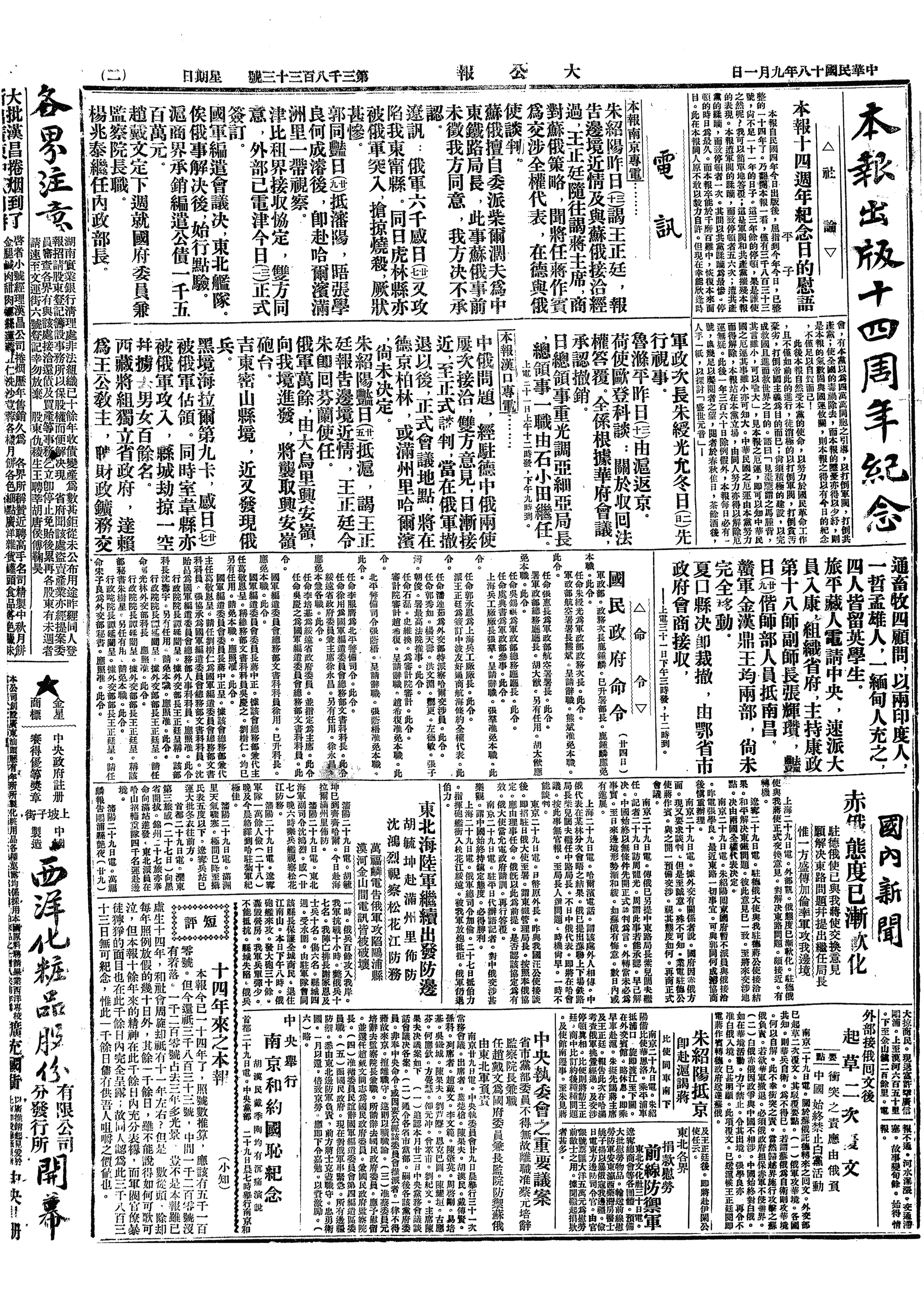 中华民国史大事记>19290901
