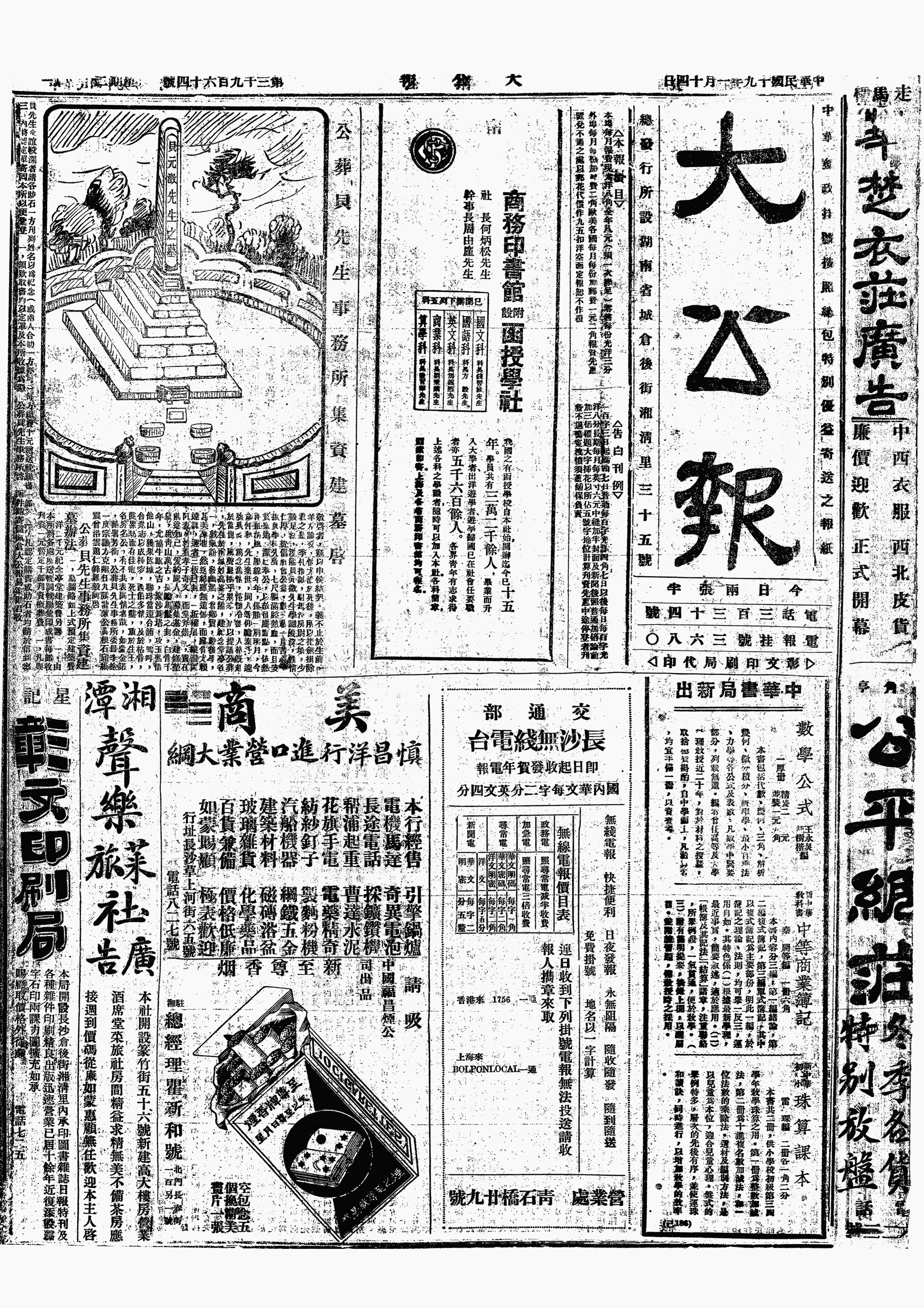 余到五弟处,适连鼎在焉,余告以16日万俥、呈禄欲来商旧民报社卖渡之事。