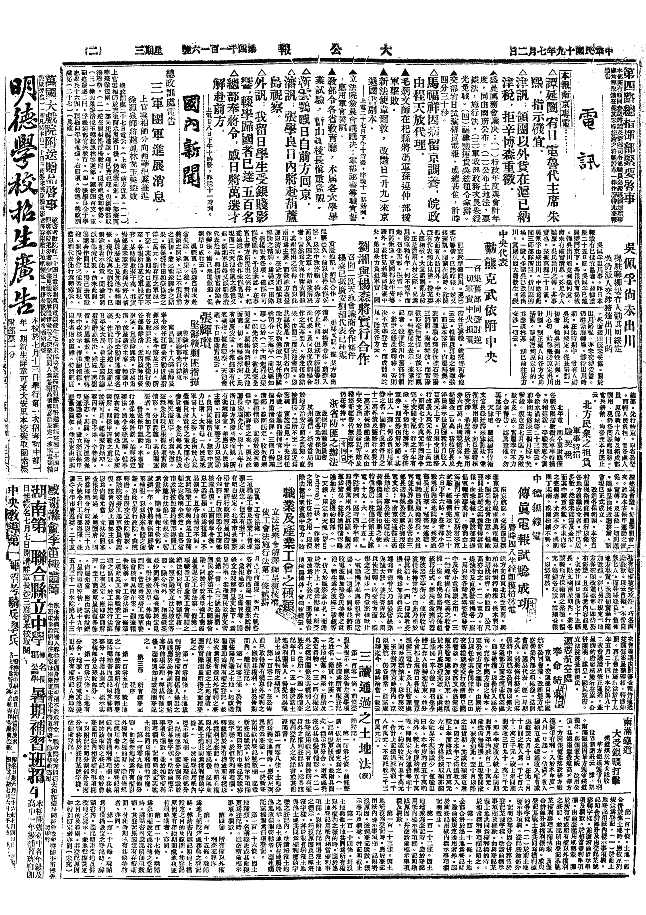 中华民国史大事记>19300702