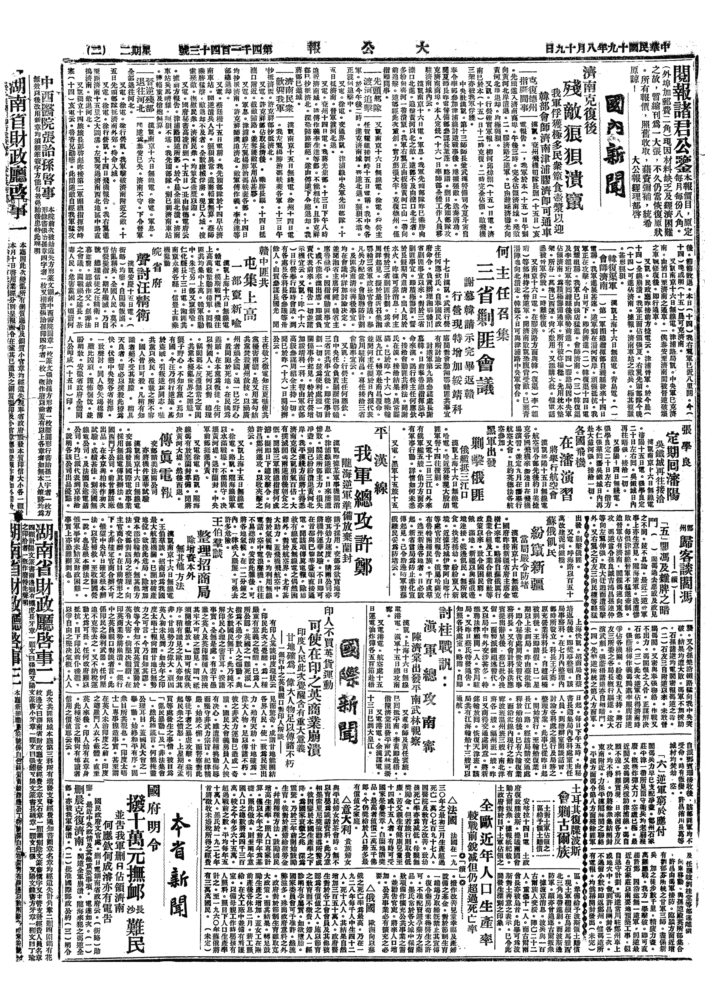 丙、山东省政府及省党部自青岛移回济南。
