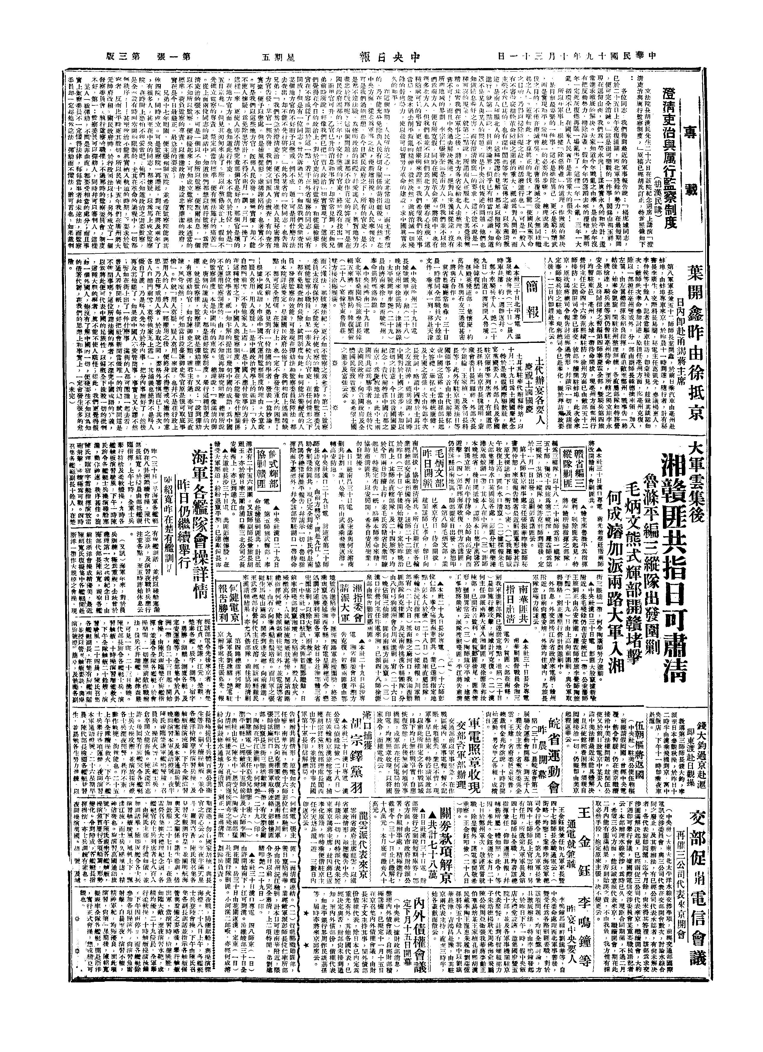 中华民国史大事记>19301031
